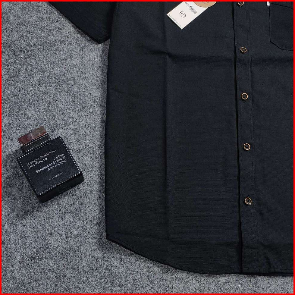 Detak Original Kemeja Polos Pria Lengan Pendek Katun Cigaret Hitam Slim-fit Kasual