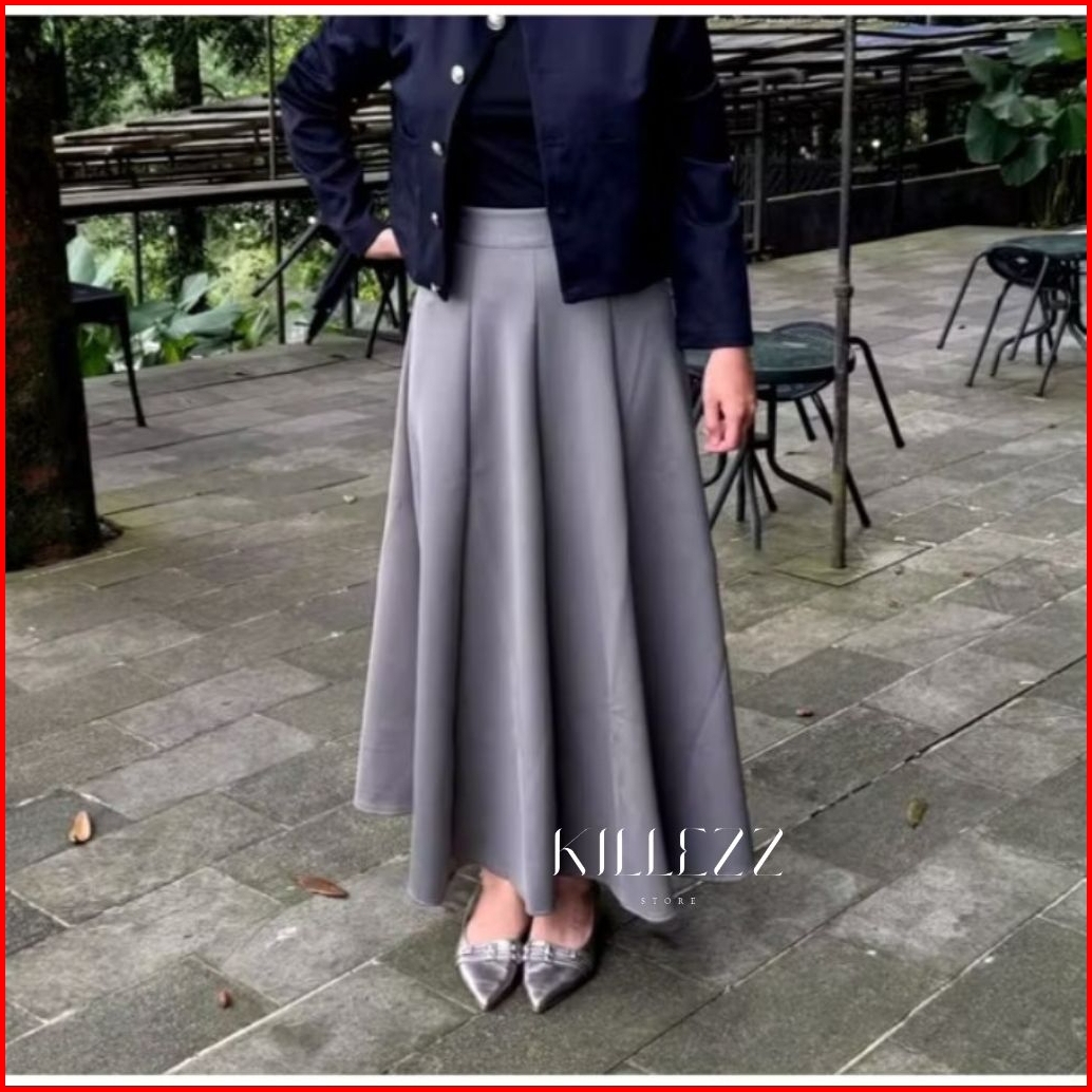 Audy Skrit Rok Payung Korean Loose Maxi Skirt Rok Wanita Anti Kusut Rok Span Flare Wanita