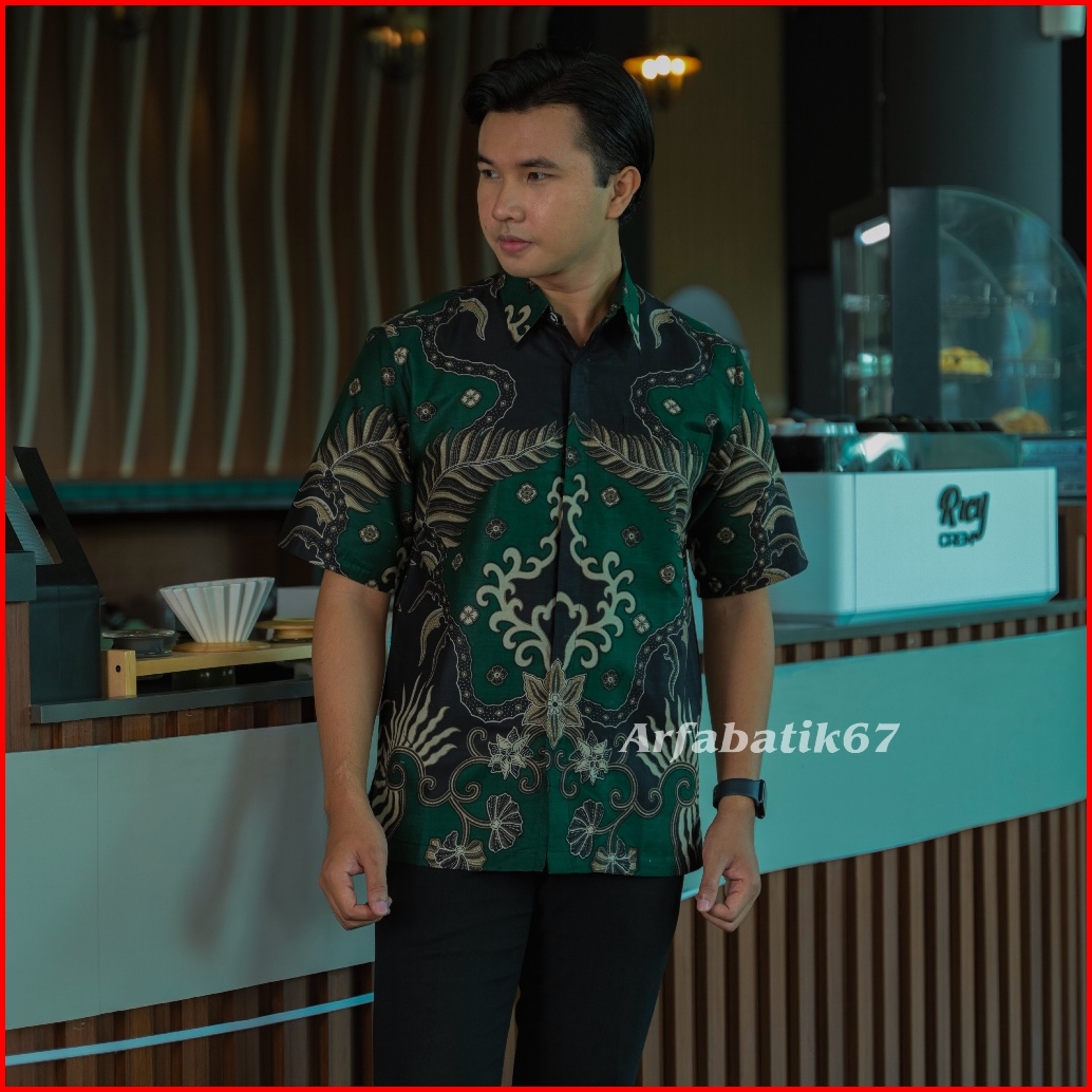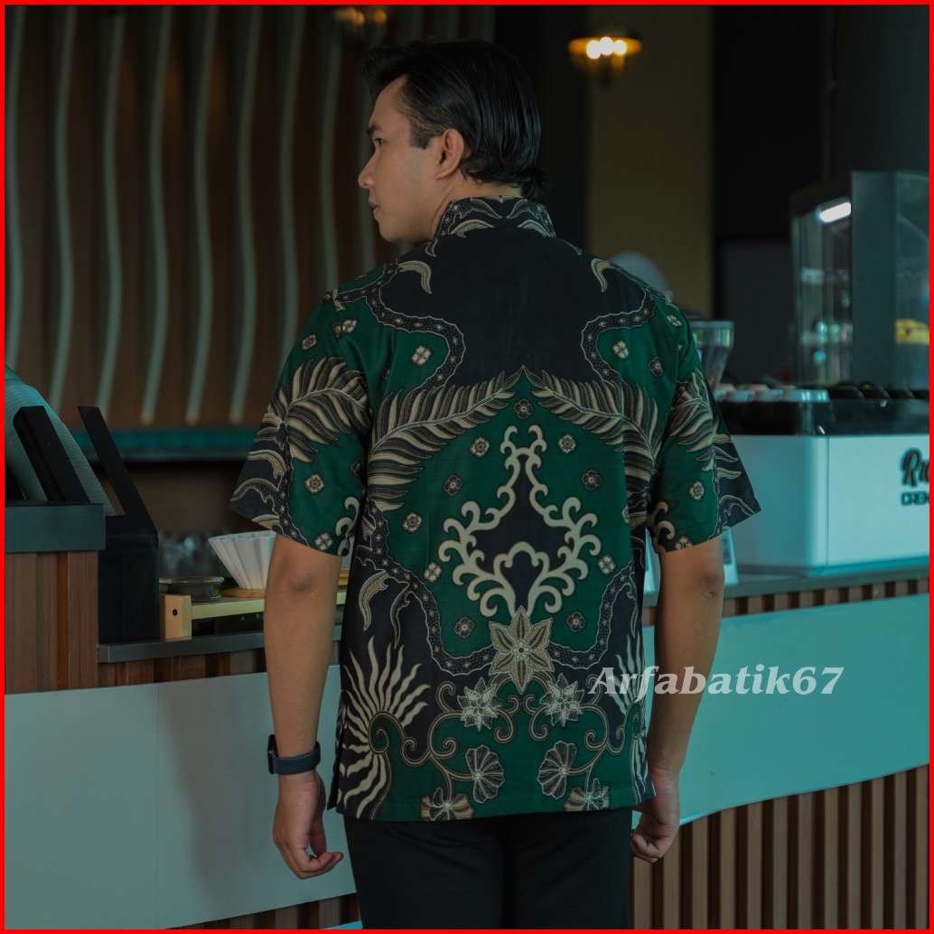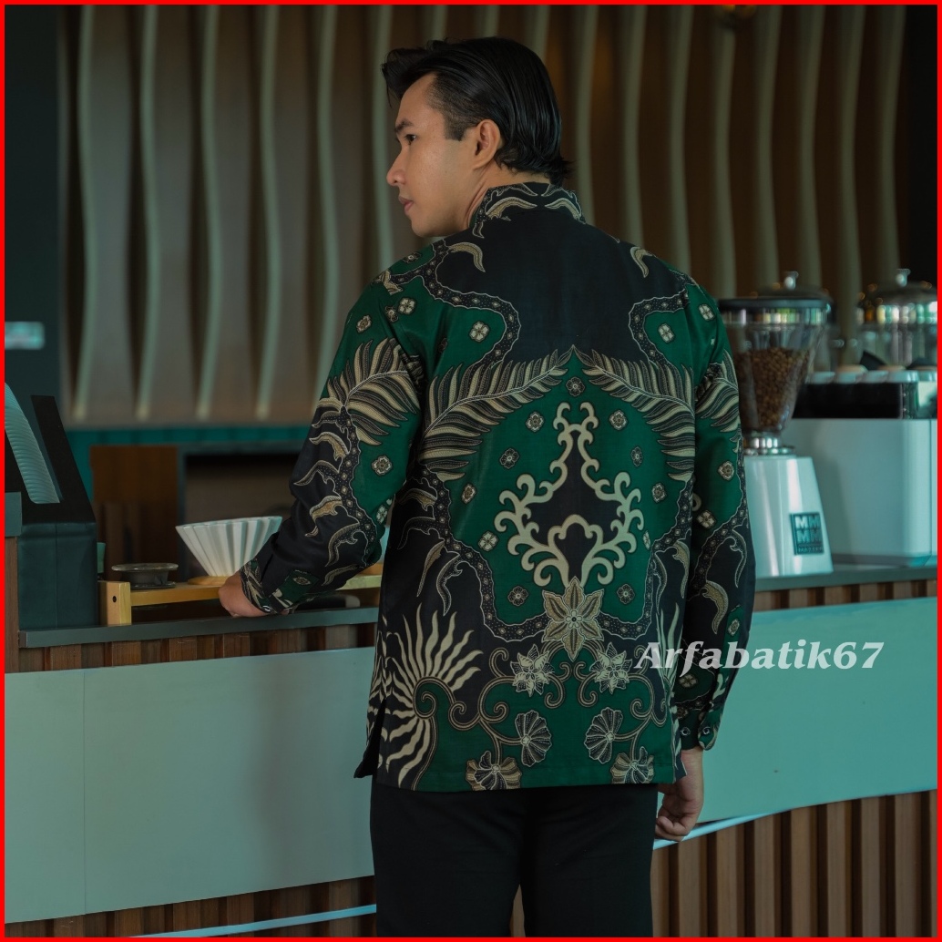 Sultan Hijau Botol Kemeja Batik Pria Lengan Panjang Katun Solo Lapis Furing Hero Ready Seragaman By Arfabatik67