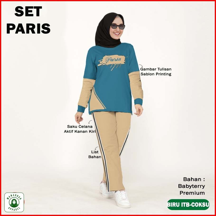 Ma Set Paris - Setelan Kaos Celana Olahraga Senam Wanita Muslim Sablon Bahan Babyterry Adem Size Xl Xxl Xxxl 35670