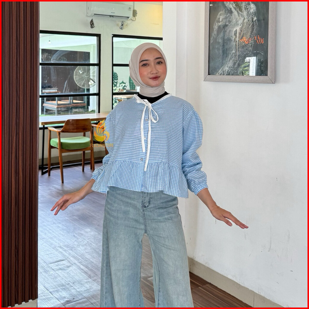 Zani - Aiko Blouse Crop Cotton Casual - Atasan Wanita Motif Kotak