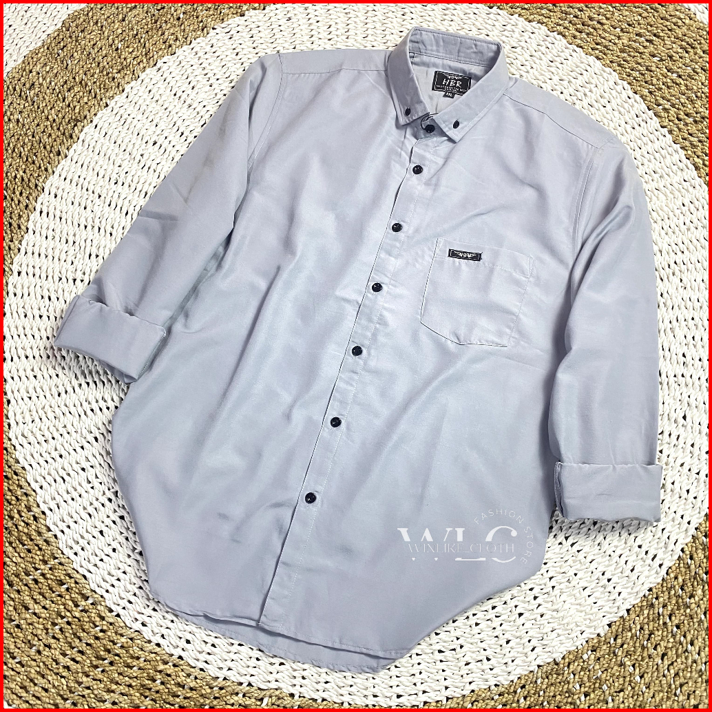 Kemeja Polos Pria Abu-abu Muda Panjang Casual Terbaru Size M L Xl Xxl