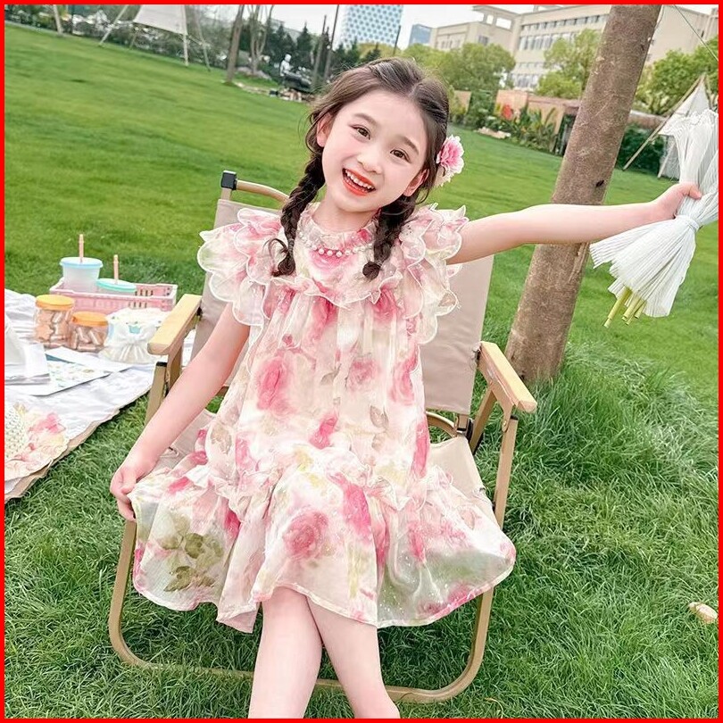 Kidsfo-26 Dress Gaun Anak Remaja Perempuan Gaya Korea Bunga Kilat Mutiara