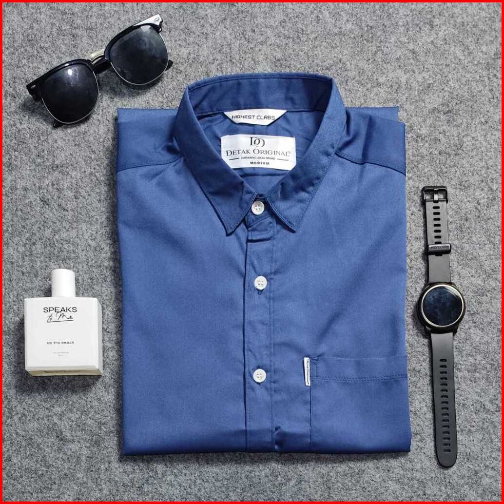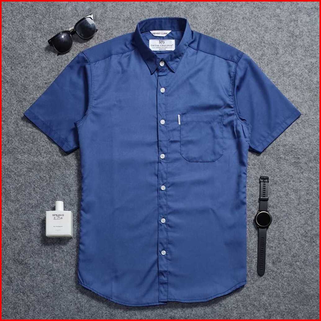 Detak Original Kemeja Polos Twill Premium Pria Lengan Pendek Steel Blue Casual Slim-fit