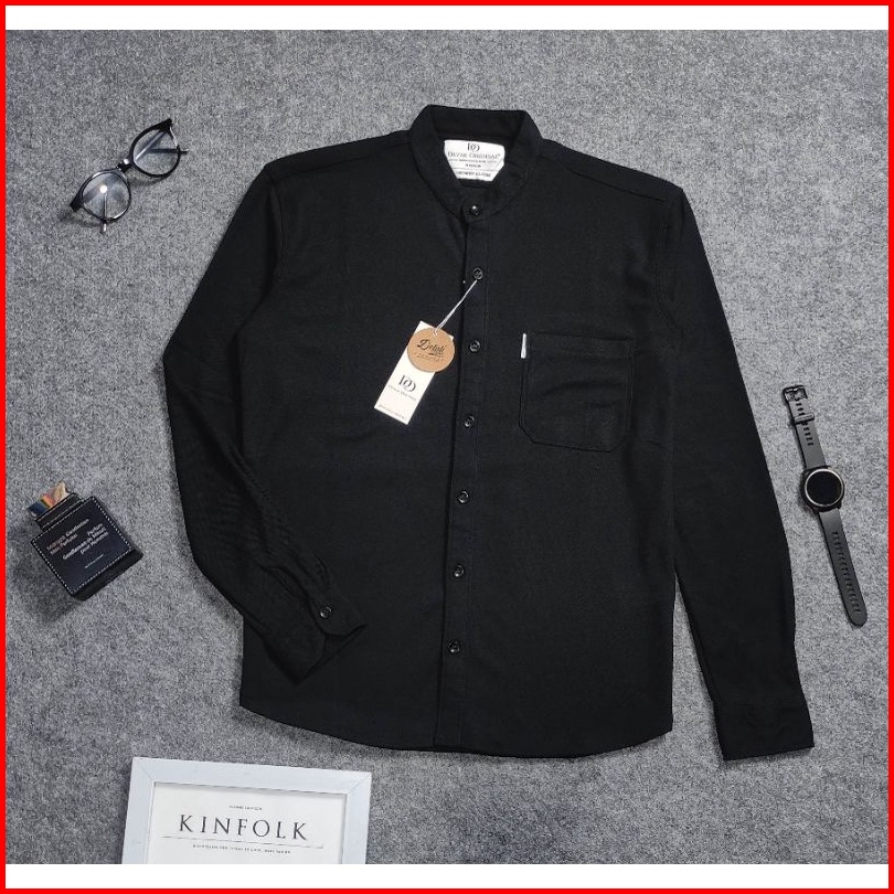 Detak Original Sanghai Kemeja Polos Pria Lengan Panjang Kerah Sanghai Cotton Lacos Pique Premium Slim Fitting Casual And