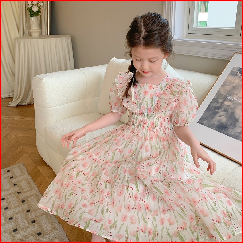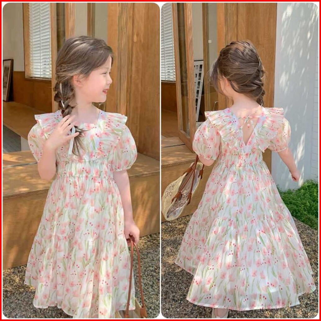 Kidsfo-38 Dress Gaun Anak Perempuan Momo Flower Dream Tulip Fashion Korea Princess