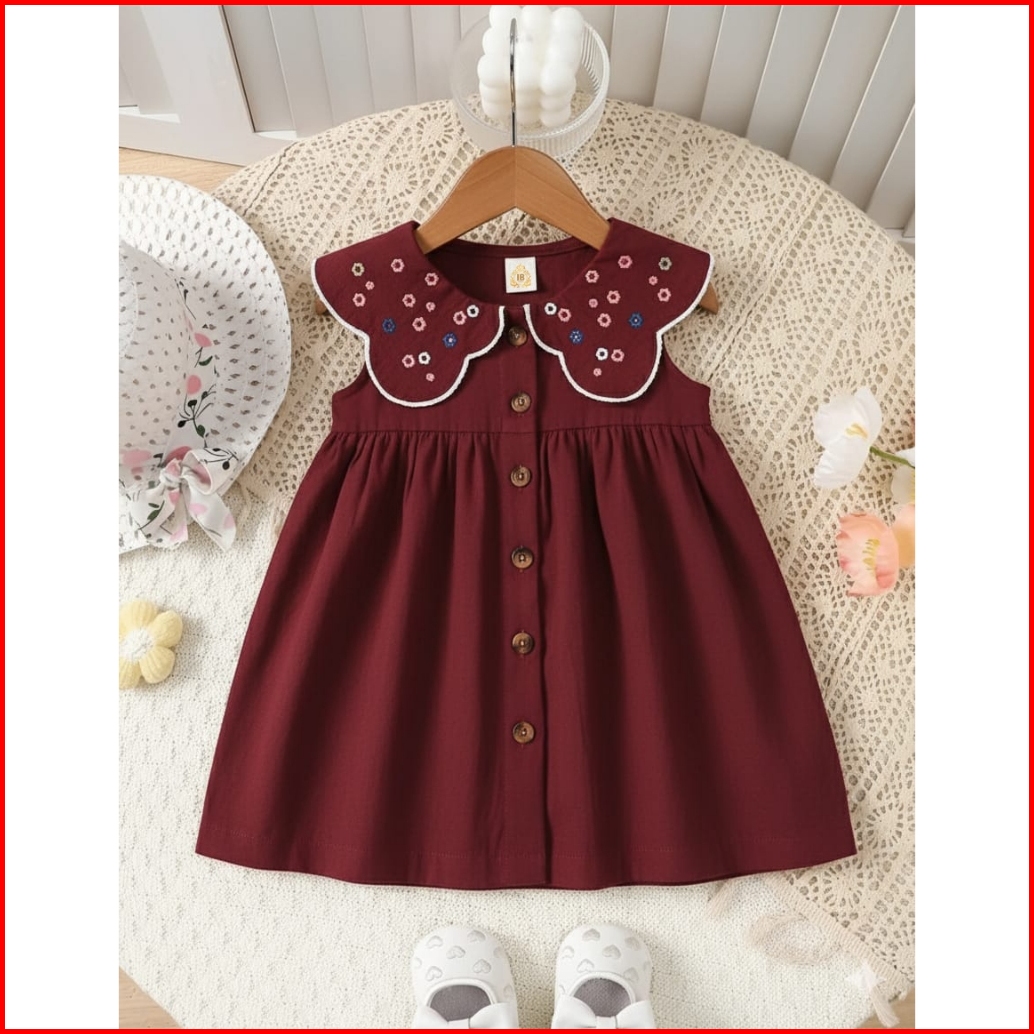 Milea Dress Anak Perempuan Embrodery 1-5 Tahun Rayon Twill Premium Full Kancing Depan