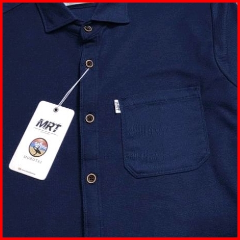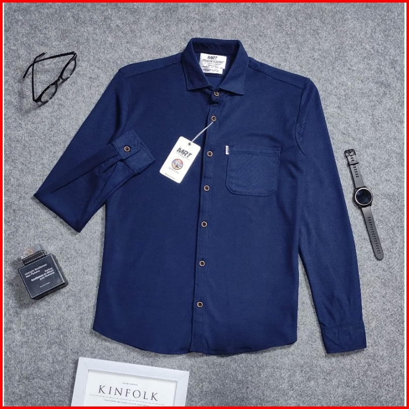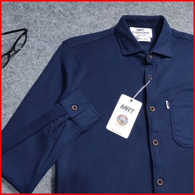 Detak Original Kemeja Polos Pria Lengan Panjang Cotton Lacos Pique Premium Slim-fit Biru Navy