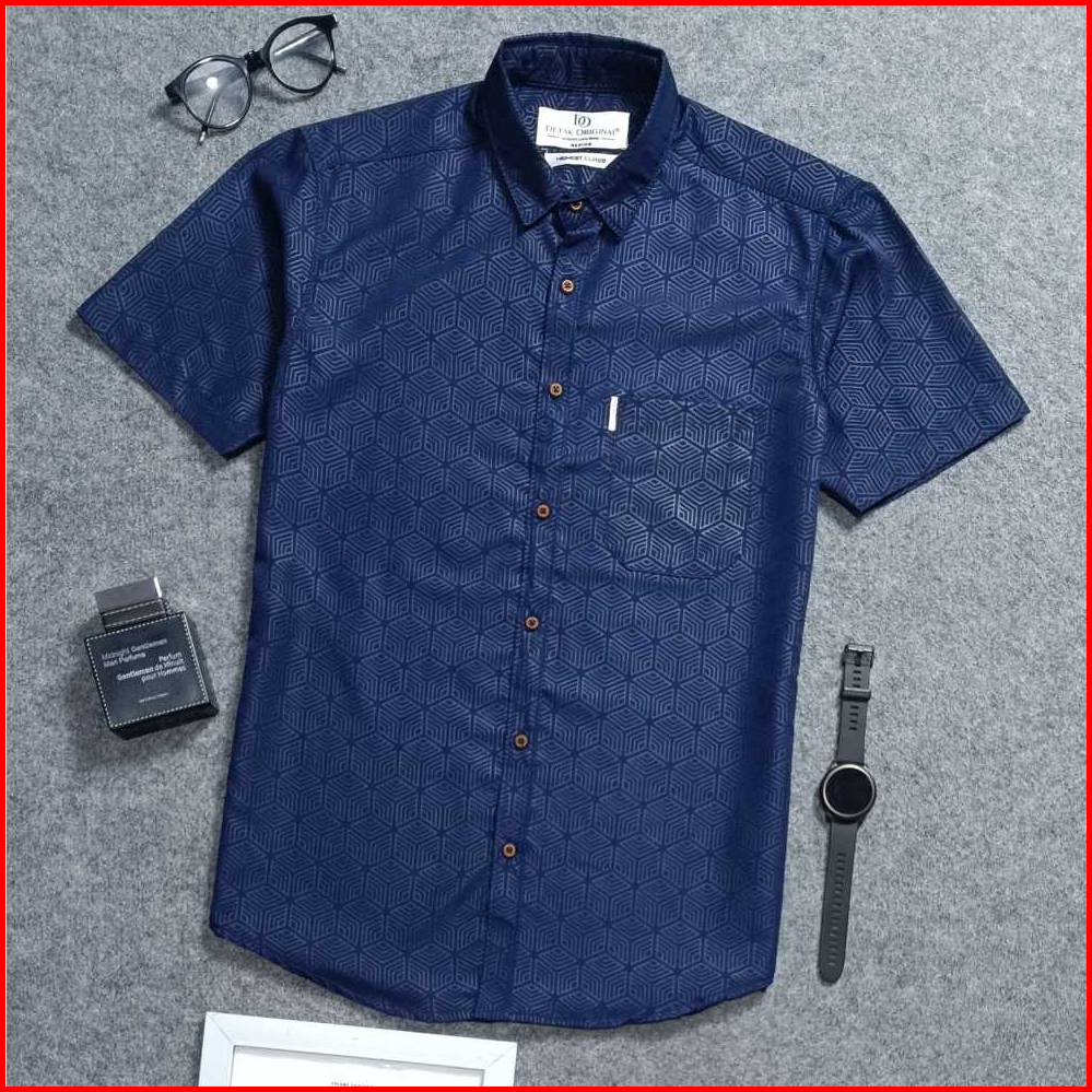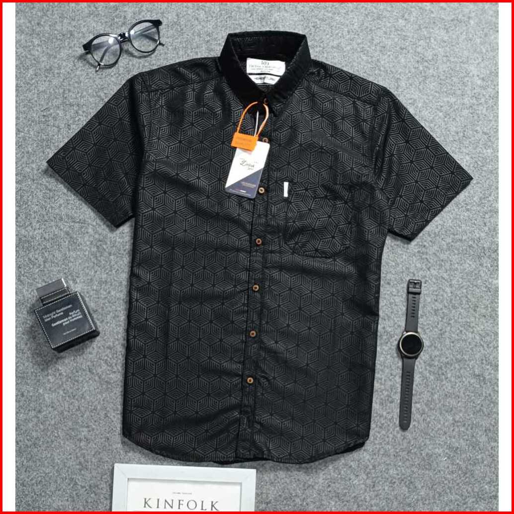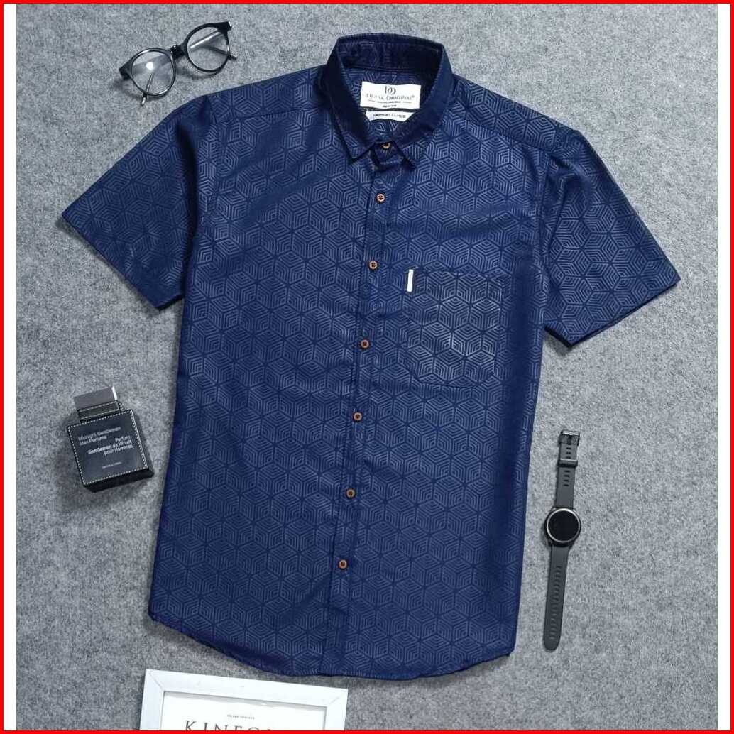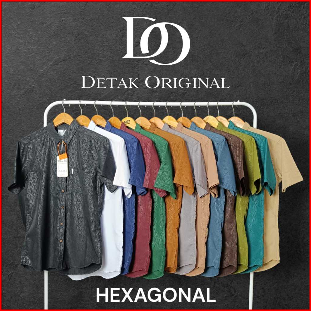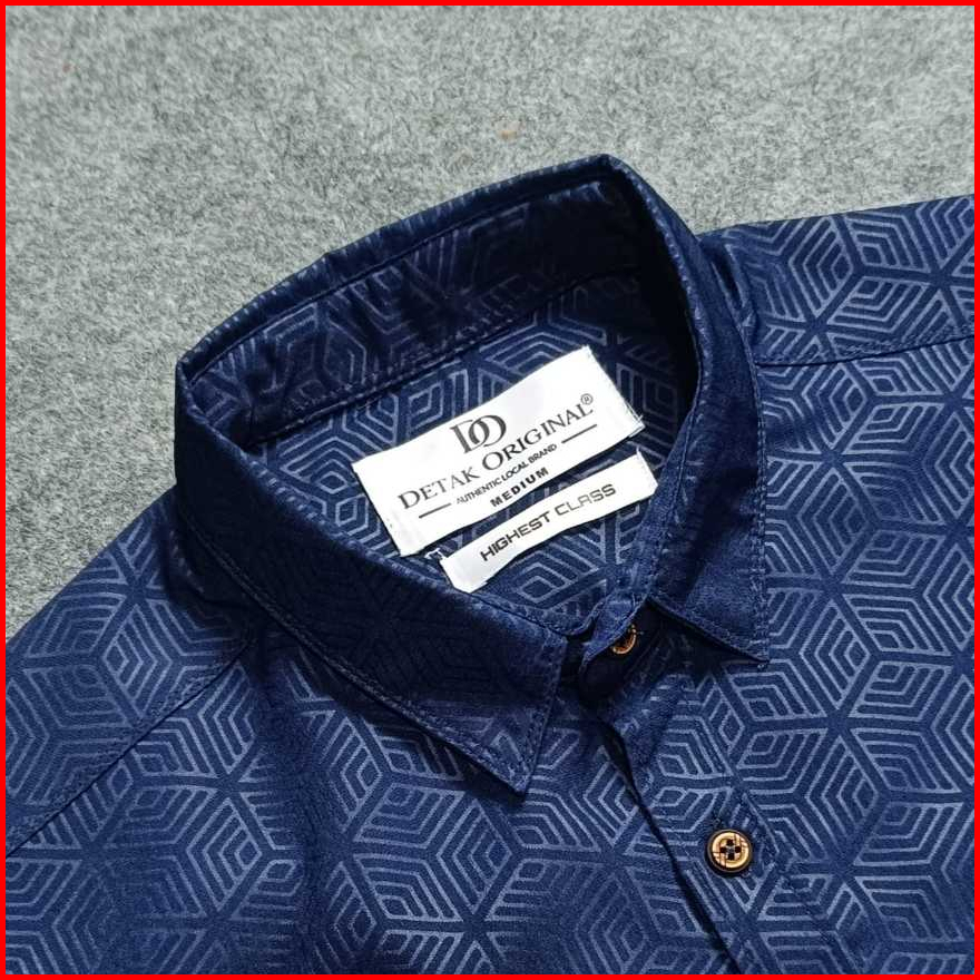Detak Original Kemeja Embos Sultan Lengan Pendek Pria Motif Hexagonal Hitam Putih Navy