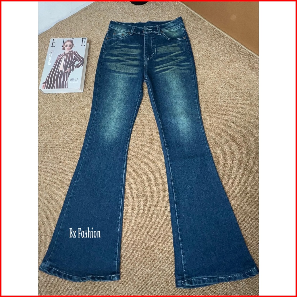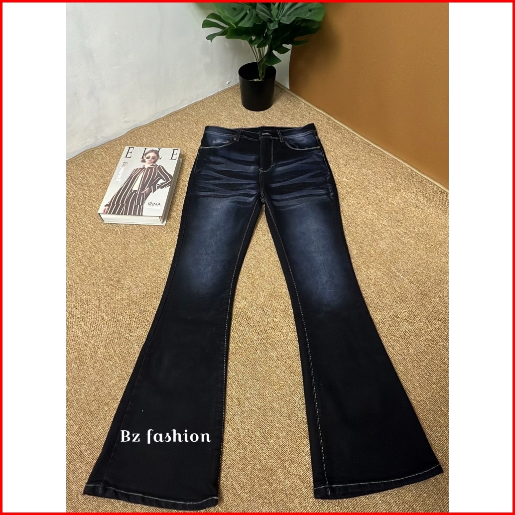 Celana Cutbray Wanita Highwaist Premium Flared Jeans Korea Retro Kekinian Black Wash