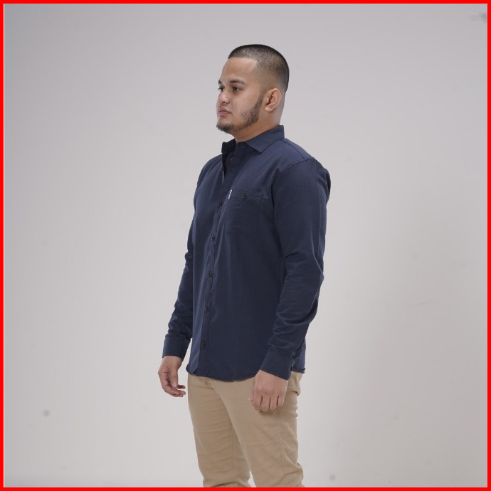 Detak Original Navy Blue Kemeja Polos Pria Lengan Panjang Slim-fit Biru Navy