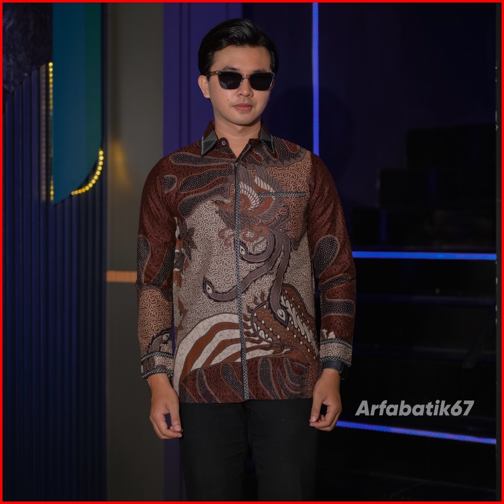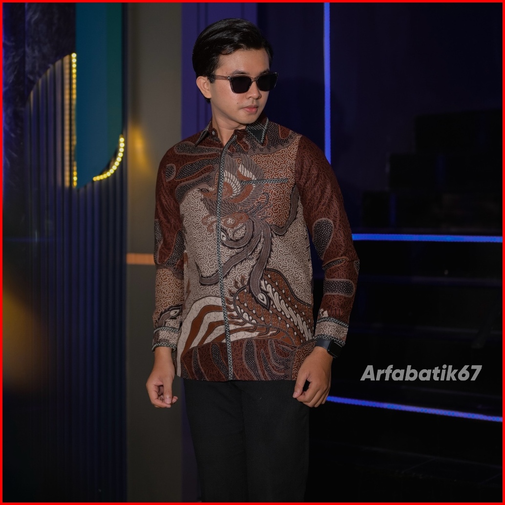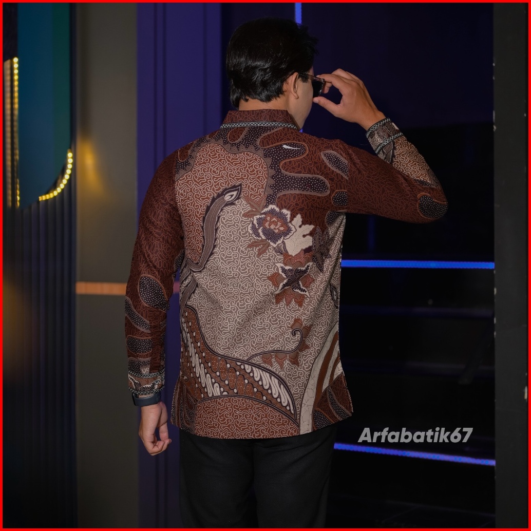 Bunaya Mahogany Smock Kemeja Batik Smock Bordir Pria Katun Prima Premium Lengan Panjang Lapis Full Furing Trikot Wafle F