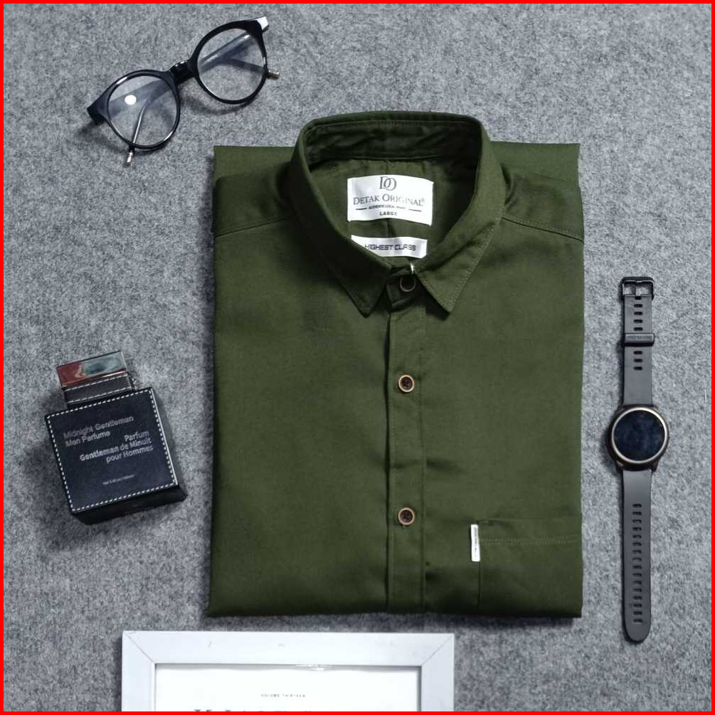 Detak Original Kemeja Polos Pria Lengan Pendek Twill Hijau Army