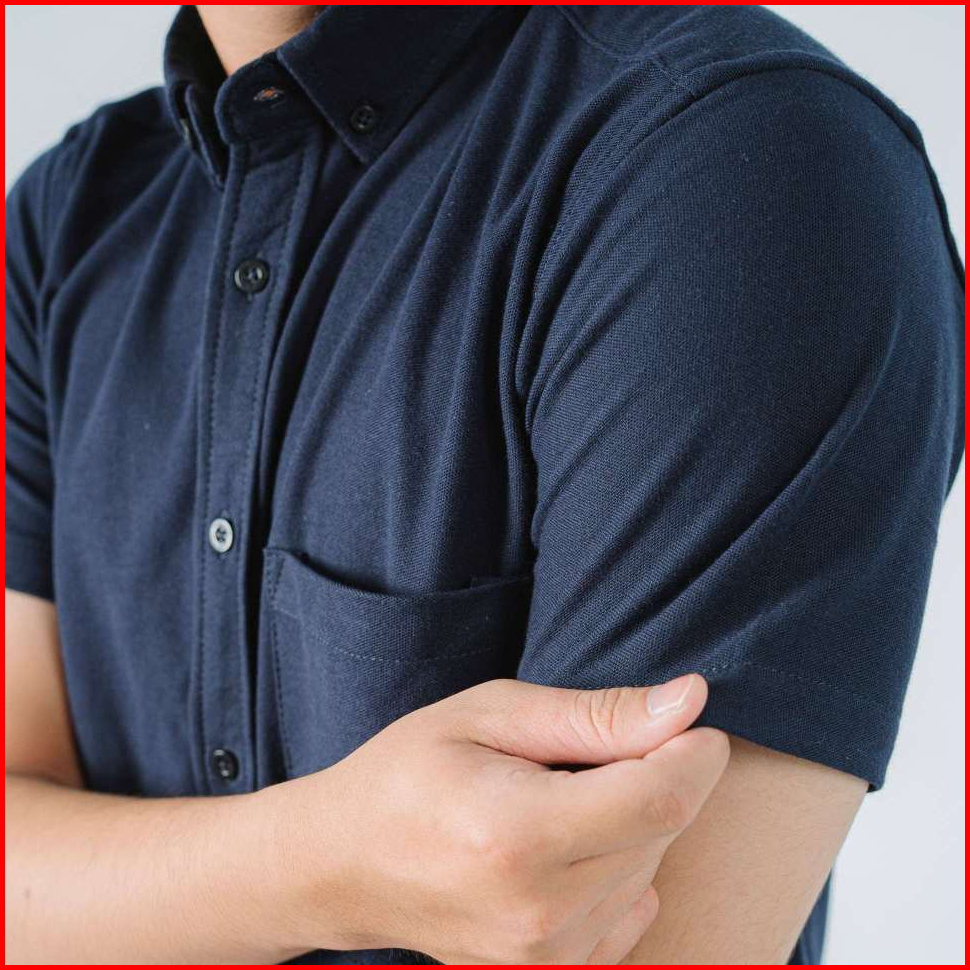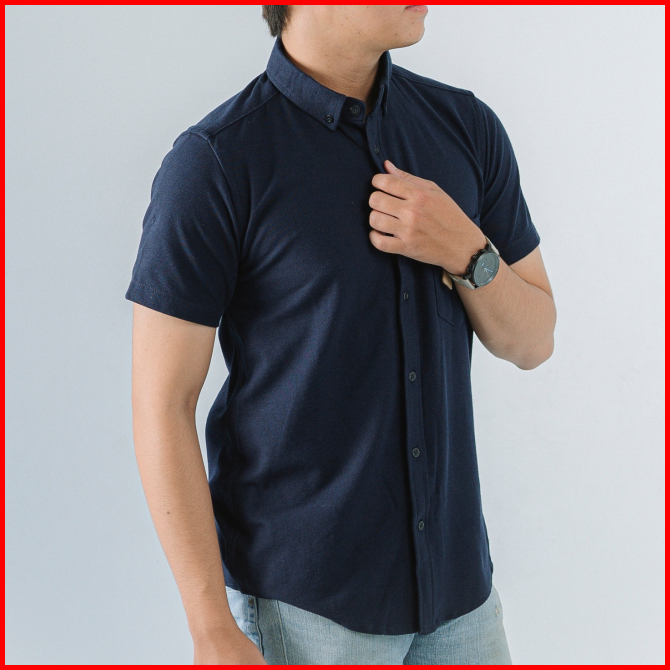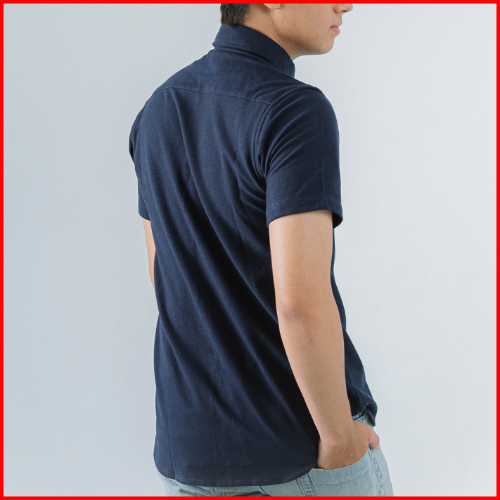 Loku Kemeja Casual Pria Lengan Pendek Biru Shirt Basic Cotton Pique Navy