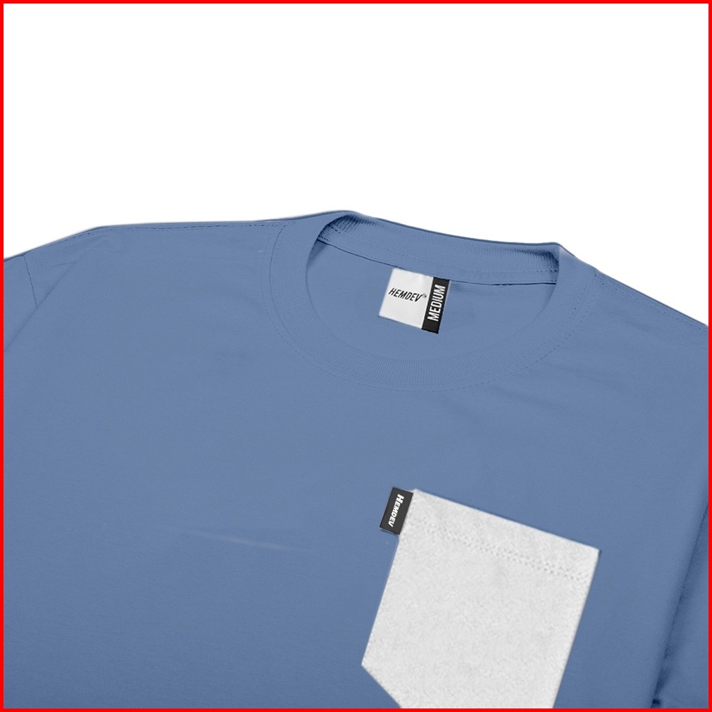 Hemdev Tshirt Pocket Basic Blue Tees Katun
