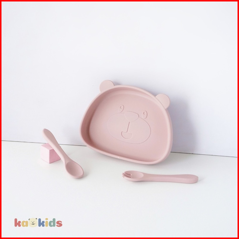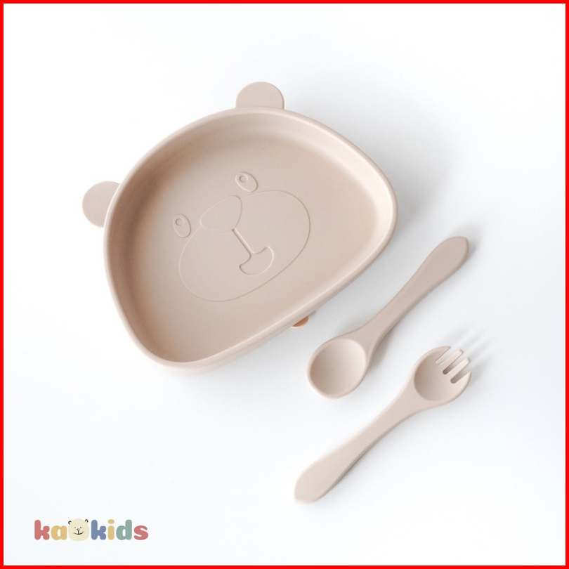Kaokids Kids Silicone Bear Plate Set Piring Makan Mpasi Silikon Anak Bayi