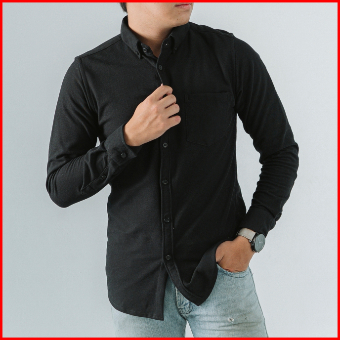 Loku - Kemeja Pria Lengan Panjang Katun Pique Longslevee Shirt Casual