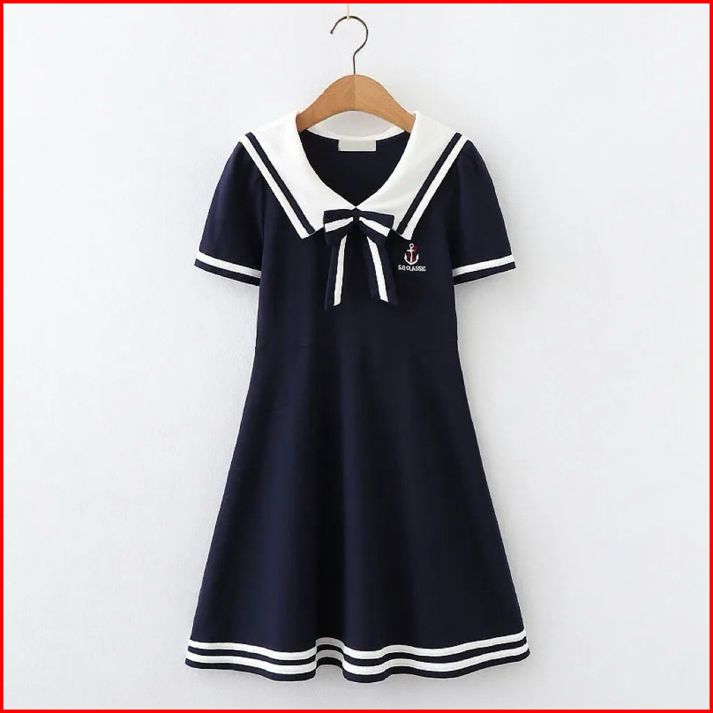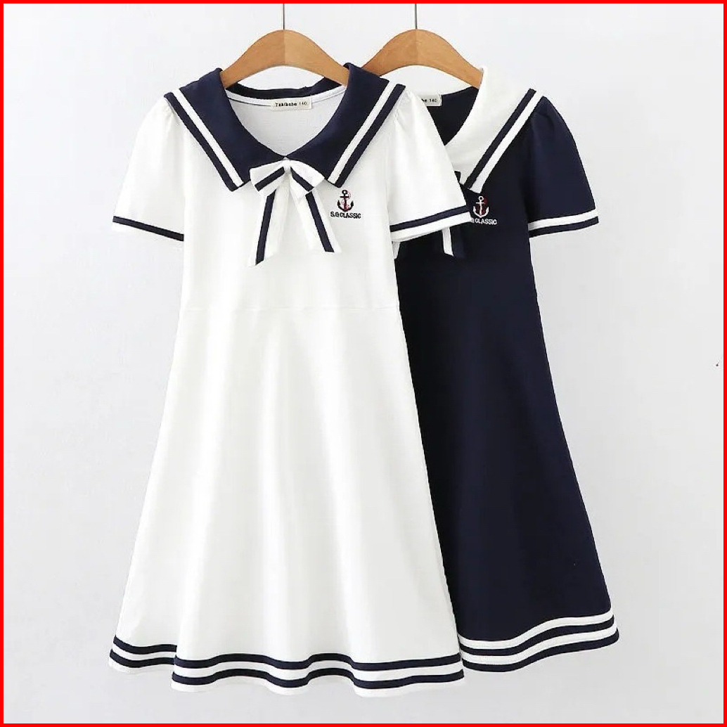 Luxica 4-14 Tahun Dress Fashion Sailor Anak Perempuan Termurah Dress Santai Anak Cewek Panjang Korea Dress Anak Korea Pr
