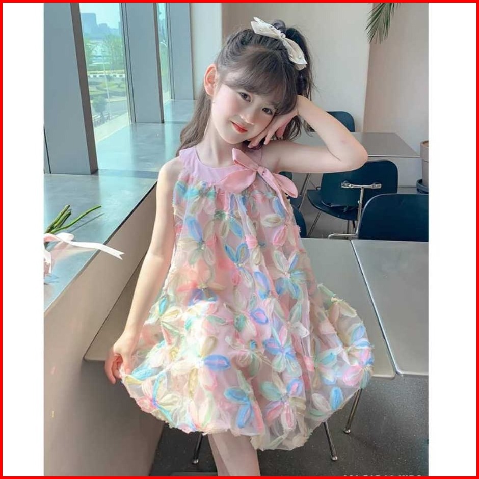Chubbi 108 - Dress Gaun Anak Perempuan Motif Bunga Timbul 3d Pearl Sleeveless