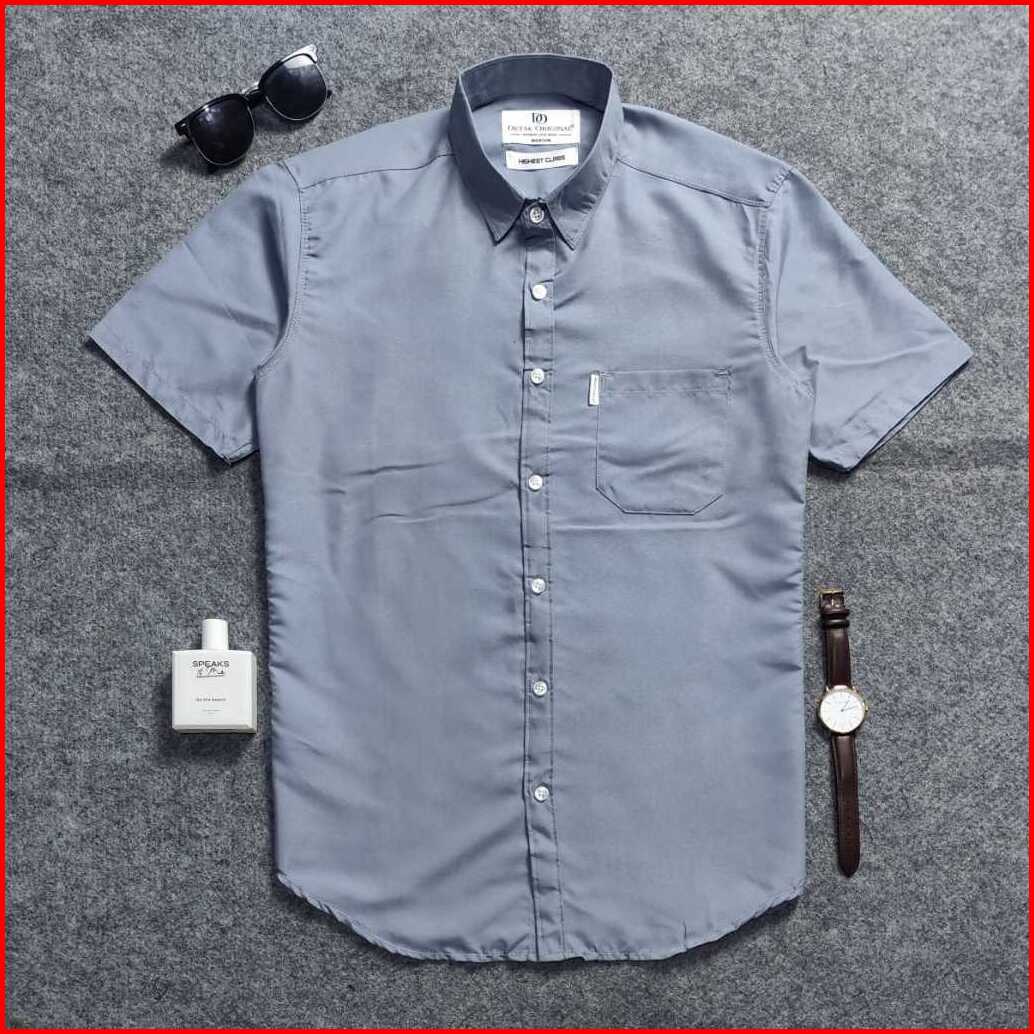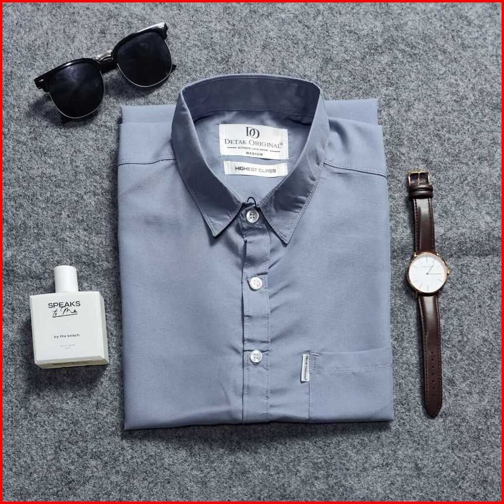 Detak Original Kemeja Polos Pria Lengan Pendek Polymicro Abu Muda Casual Slimfit