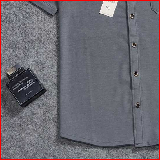 Detak Original Shanghai Kemeja Polos Pria Lengan Pendek Kerah Sanghai Abu Tua Grey