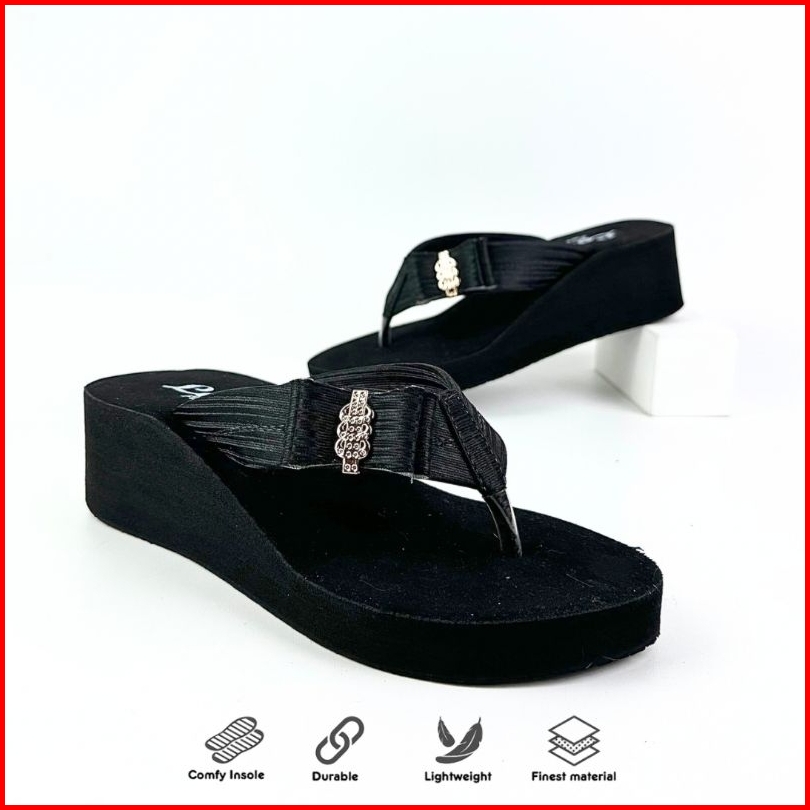 Lozta Sendal Tinggi Wanita 5cm Wedges Jepit Karet Empuk Flower 01 Series