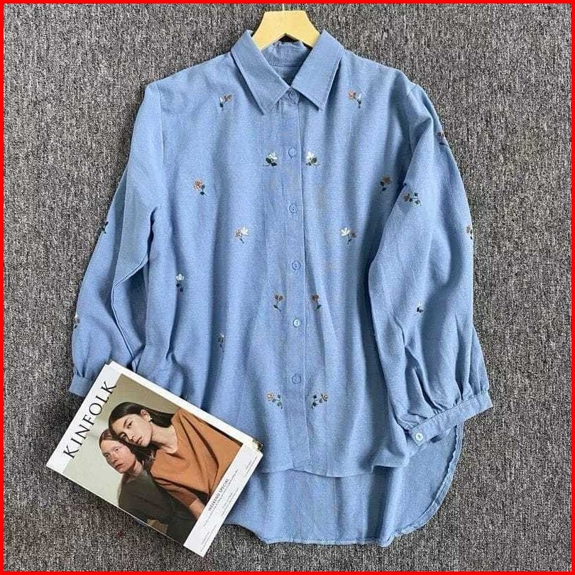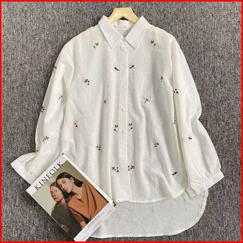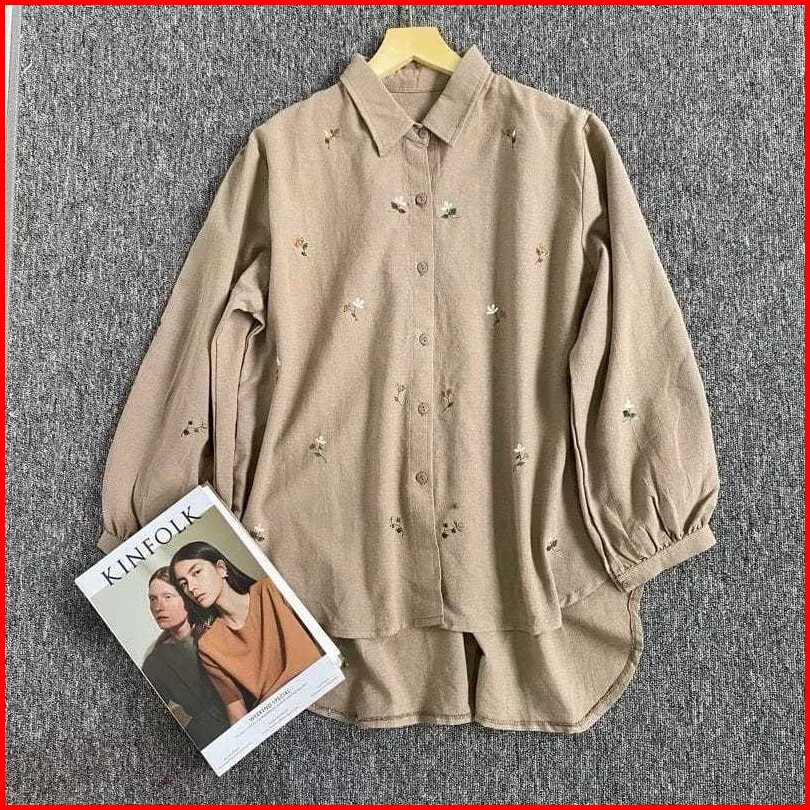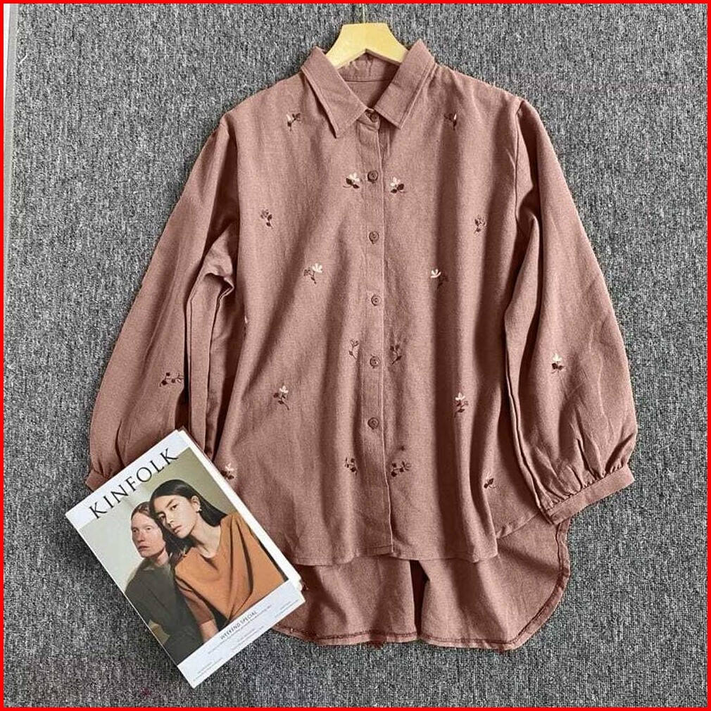 Vallina Outfit - Basic Blouse Atasan Kemeja Oversize Wanita Muslim Matt Linen Rami Ootd Korean