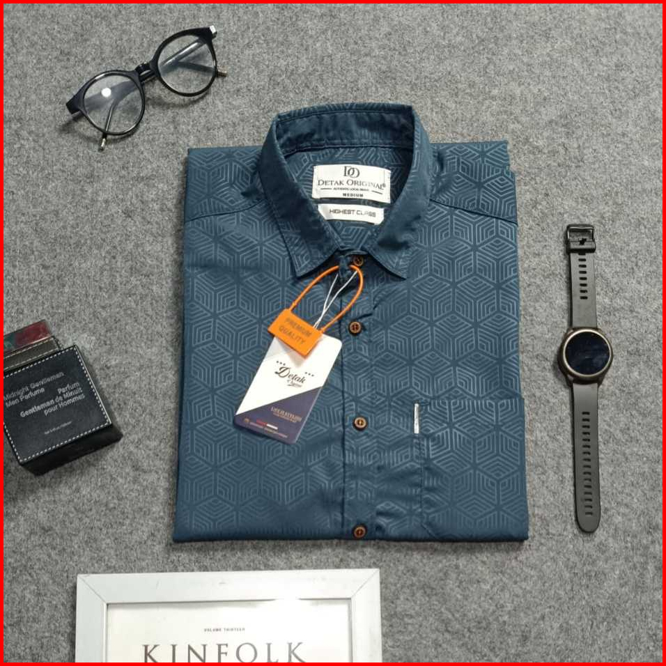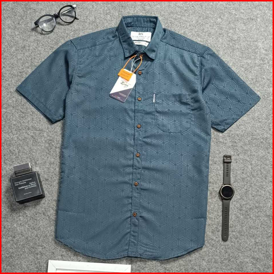 Detak Original Kemeja Embods Pria Lengan Pendek Motif Hexagonal Ash Grey