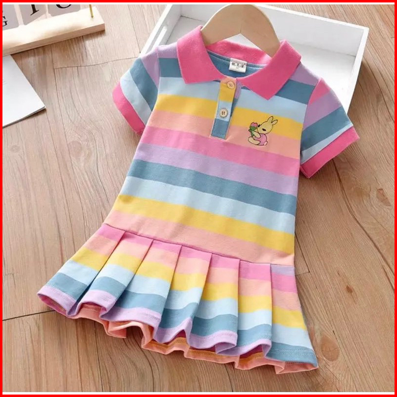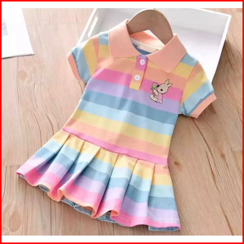 Dres Anak Perempuan Lucu Motif Pelangi Usia 1-5 Tahun Dres Kerah Pelangi