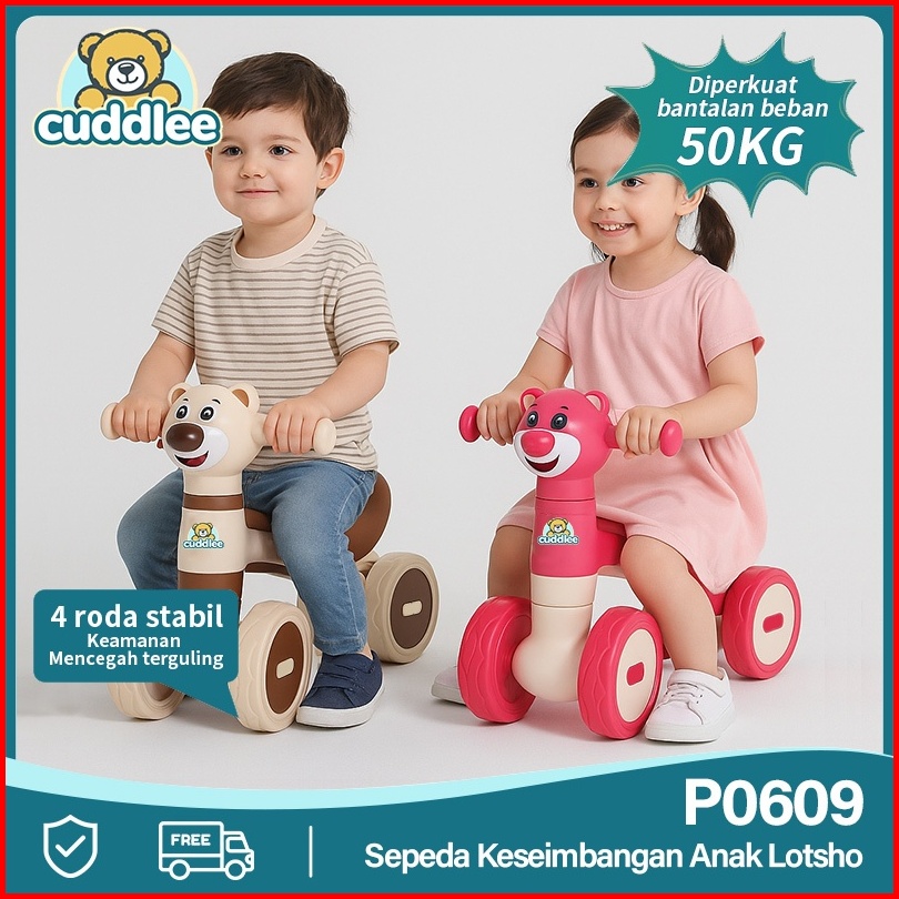 Cuddlee Sepeda Keseimbangan Anak Lotsho P0609 - Balance Bike Ride On Beruang Mainan Sepeda Anak.