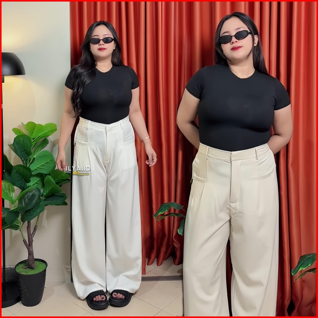 Ilya Elena Pants Semiwool Stretch Melar Jumbo Bb 50-120 Kg - Celana Kulot Wanita Formal Casual