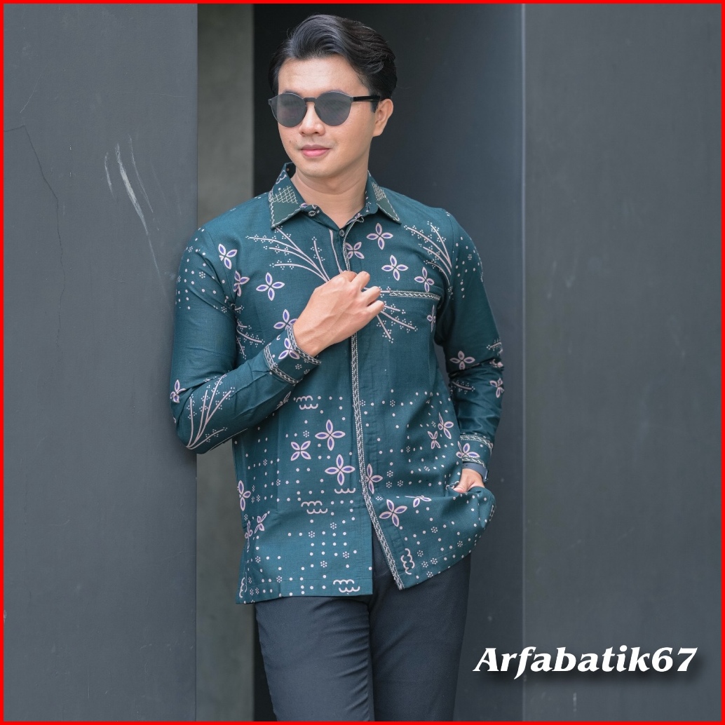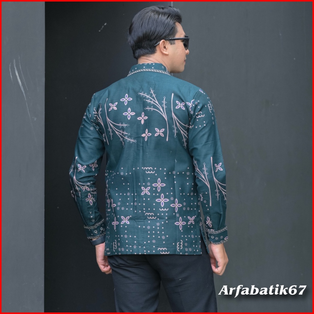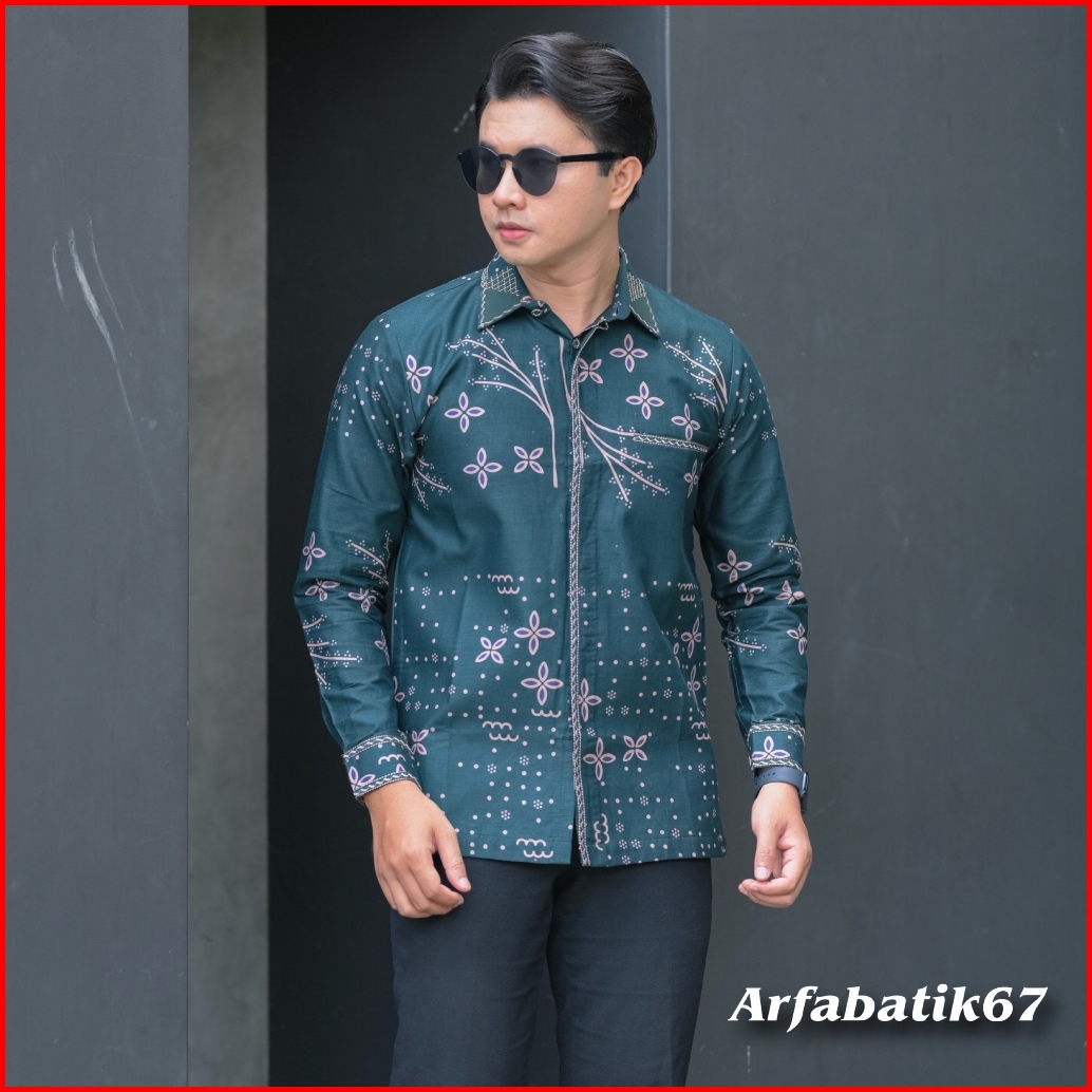 Padi Hijau Emerald Smock Kemeja Batik Smock Bordir Pria Katun Prima Premium Lengan Panjang Lapis Full Furing Trikot Wafl