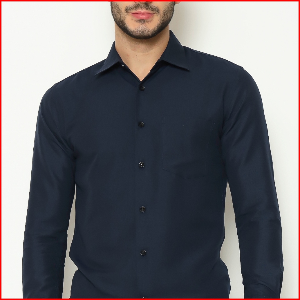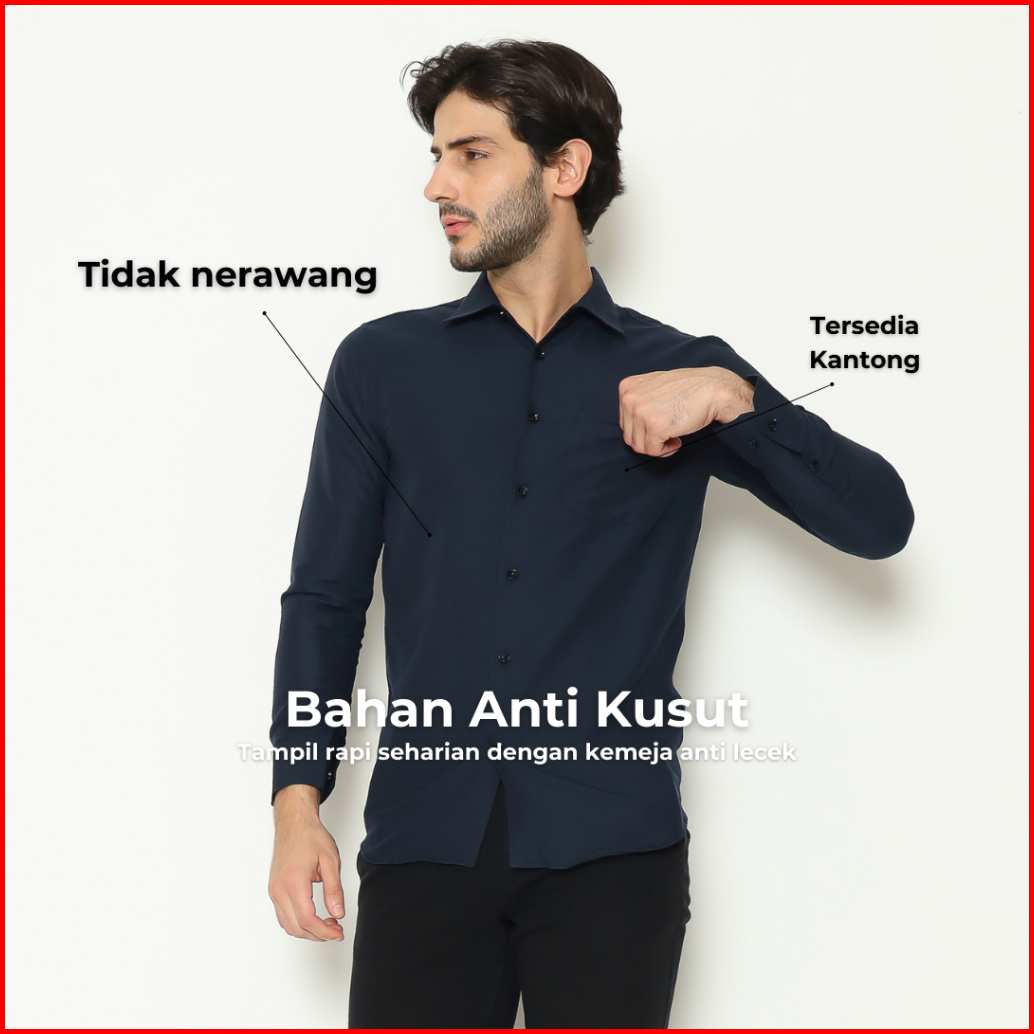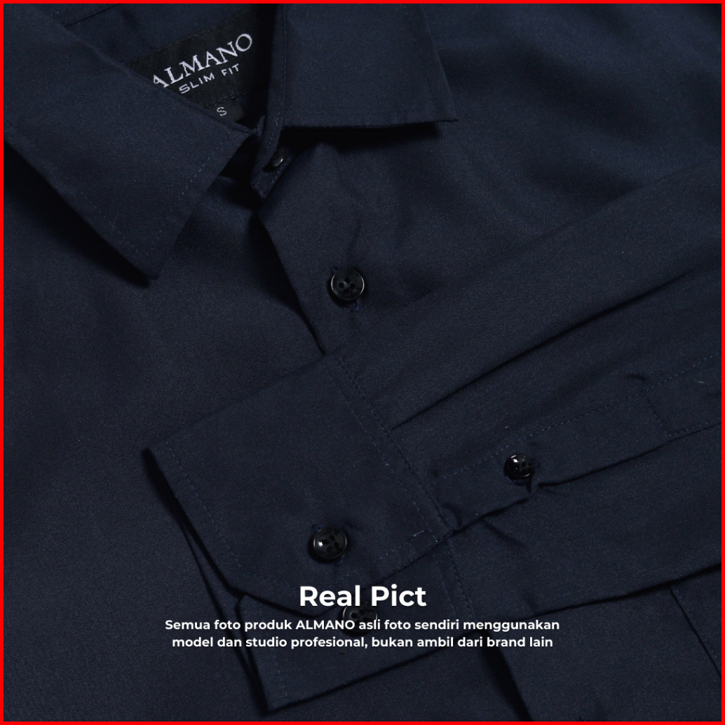 Almano Eston Shirt Ls Navy Kemeja Pria Slim Fit Polos Panjang Biru Dongker