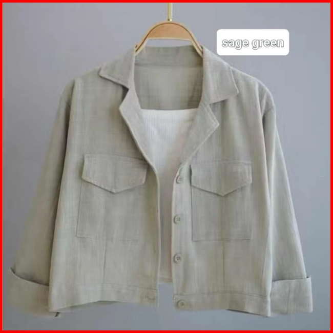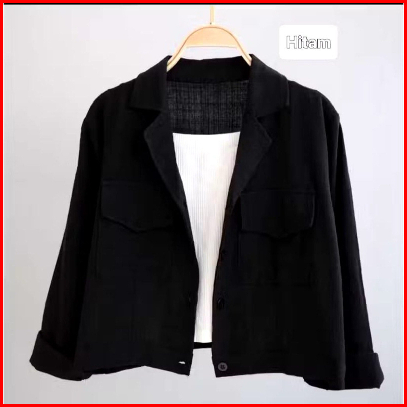 Kemeja Outher Wanita Linen Kantong Depan Basic Shirt Kemeja Crop Top Wanita Lengan Panjang Korean Style
