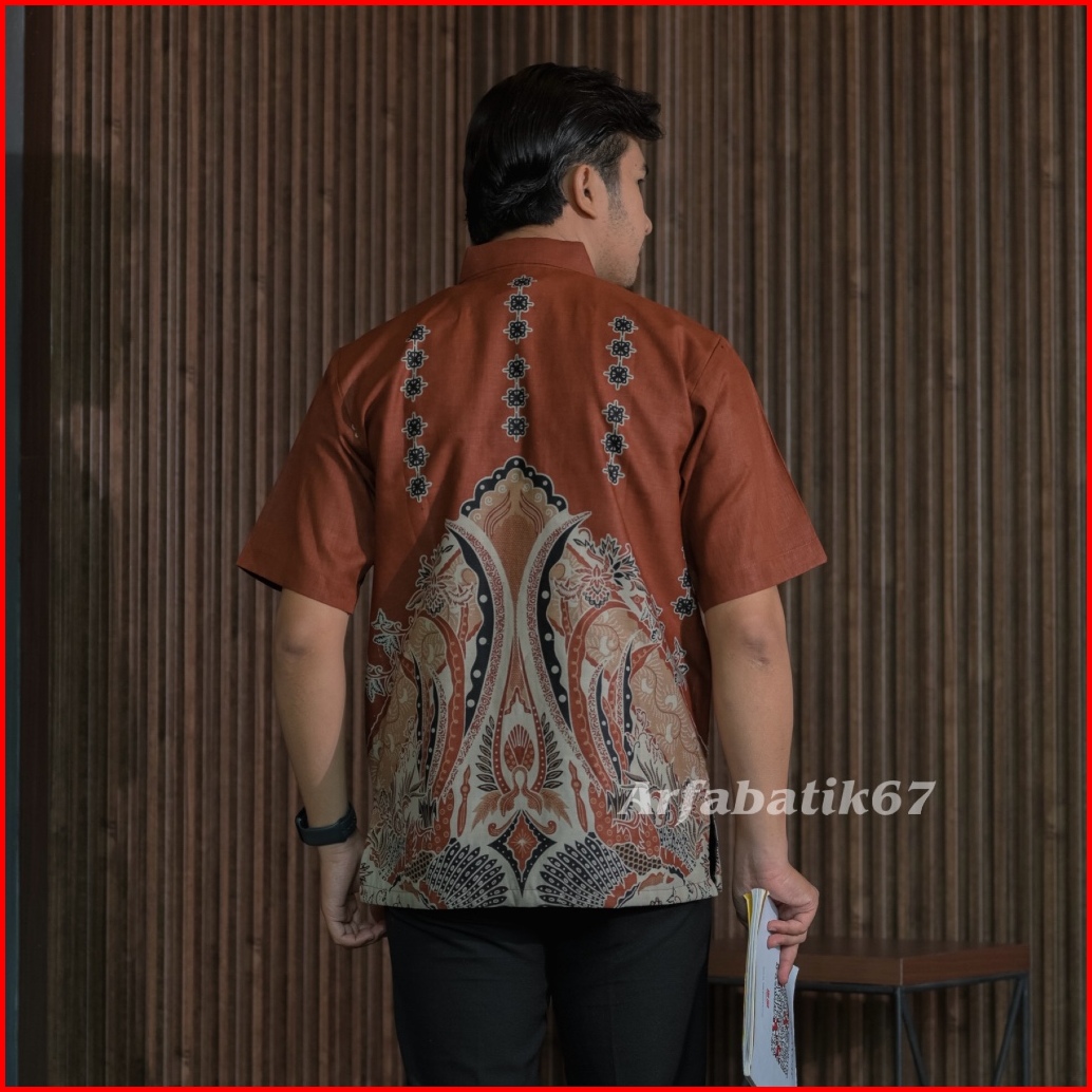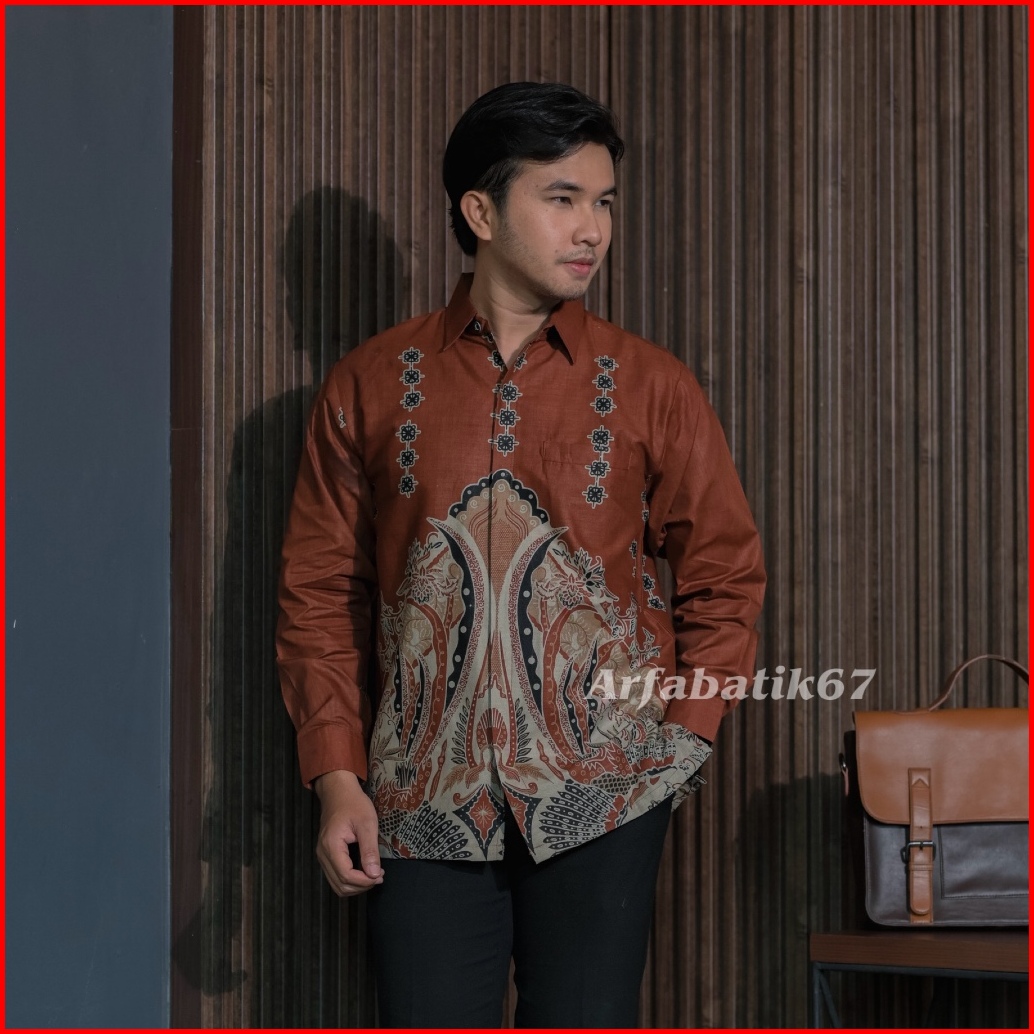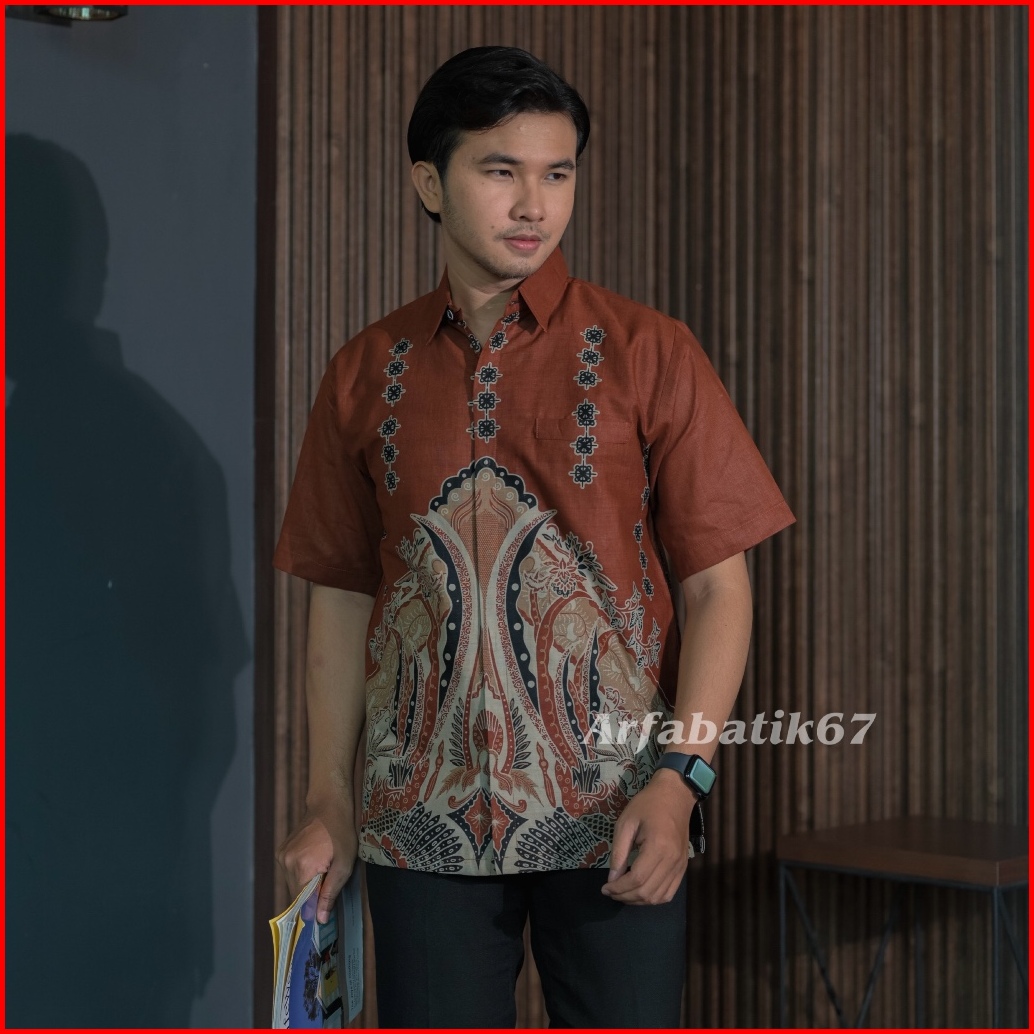 Caramel Gunungan Kemeja Batik Pria Premium Lapis Furing Hero Ready Seragaman By Arfabatik67