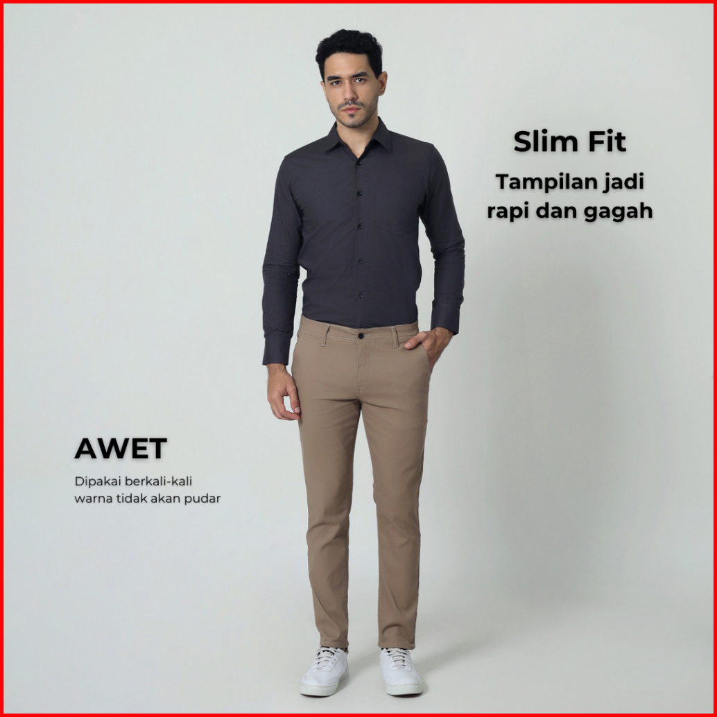 Almano Essential Chino Pants Stretch Khaky Celana Panjang Chinos Pria Slim Fit Khaki