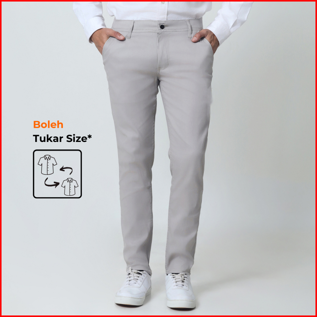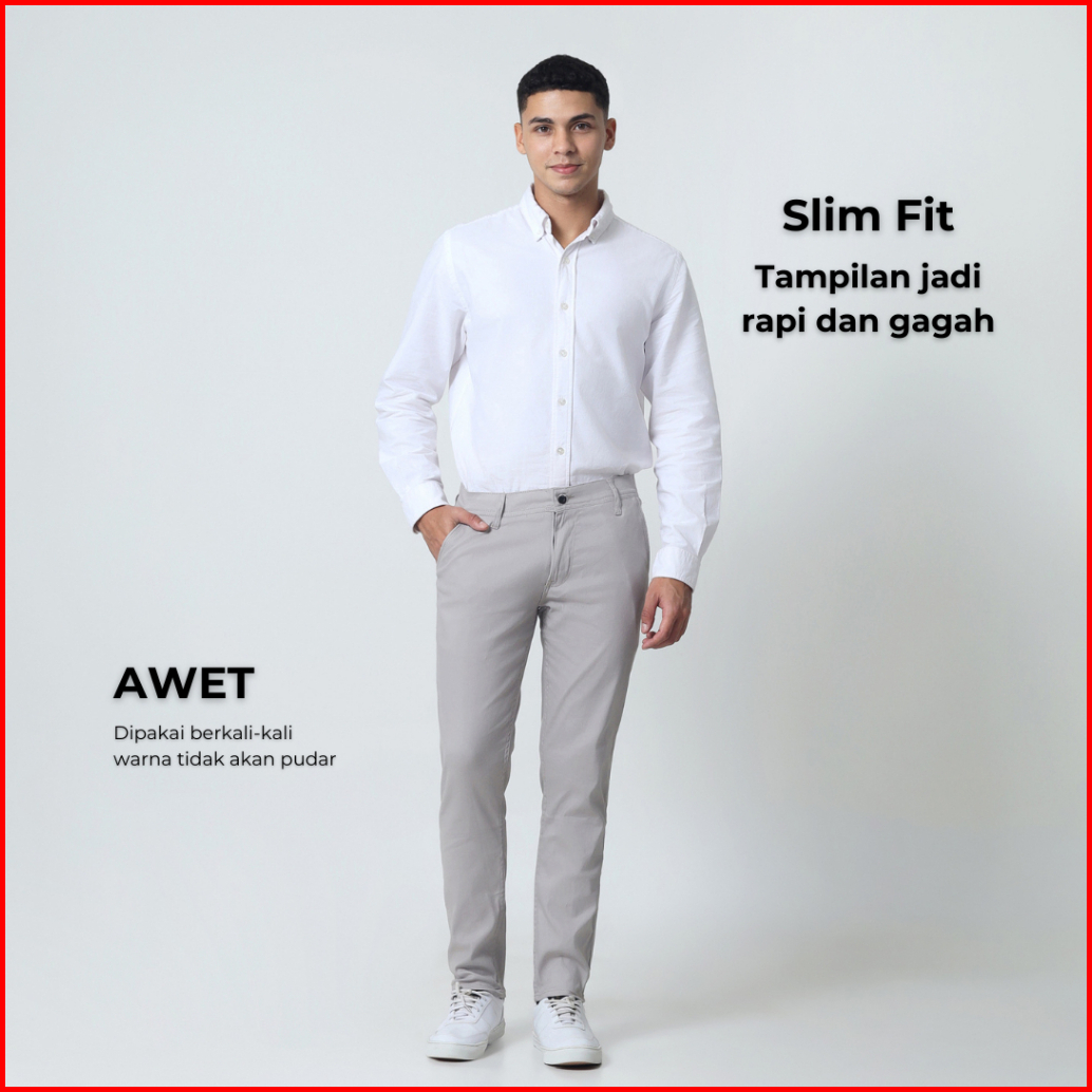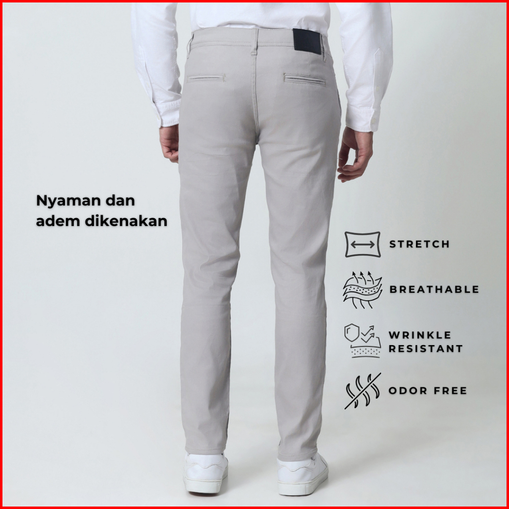 Almano Essential Chino Pants Stretch Light Grey Celana Panjang Chinos Pria Slim Fit Cream Terang