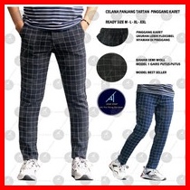 Celana Chino Tartan Pria Ankle Pants Motif Kotak2 Wanita Panjang Cowok Salur Model Slimfit