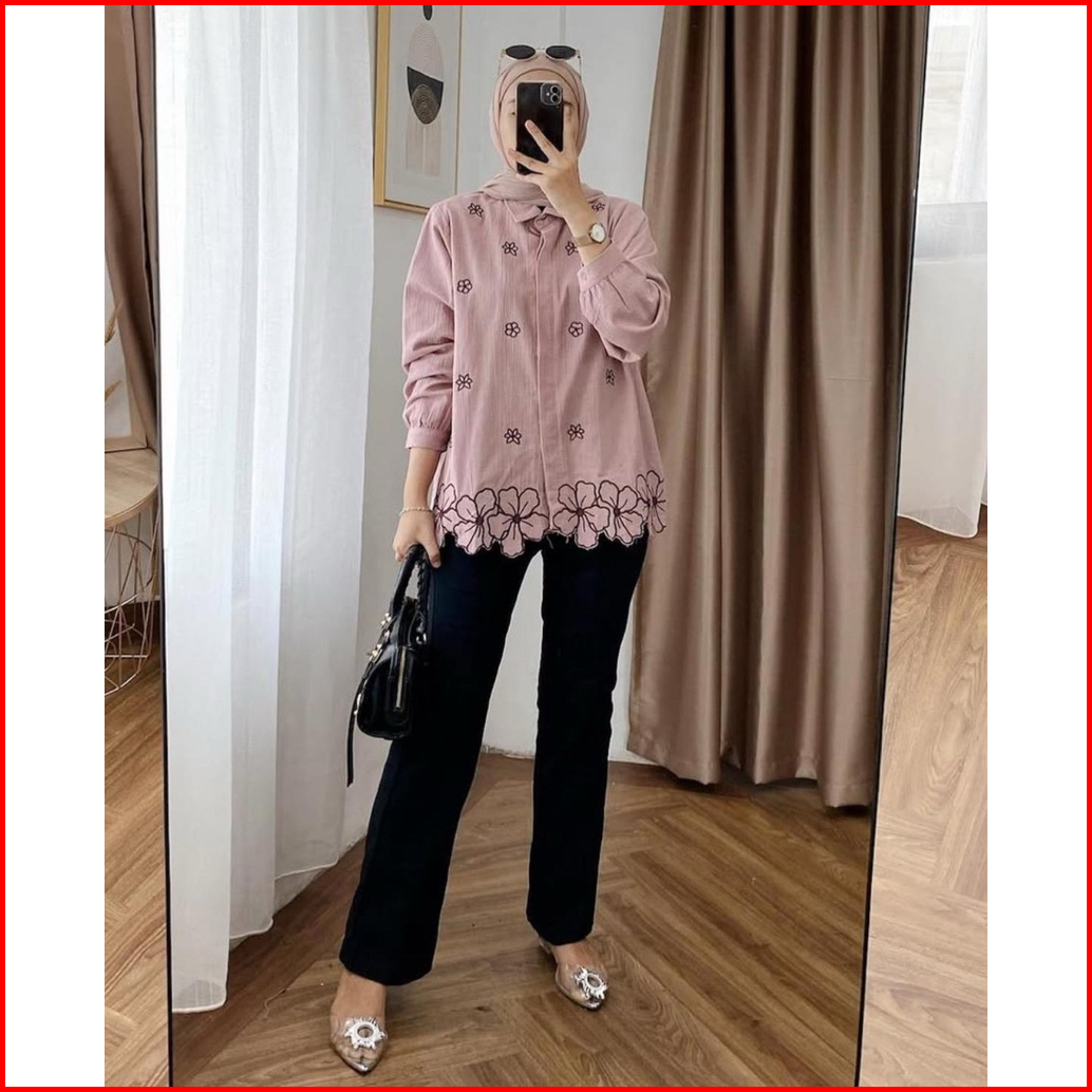 Berri Shirt Blouse Bordir Wanita Linen Premium