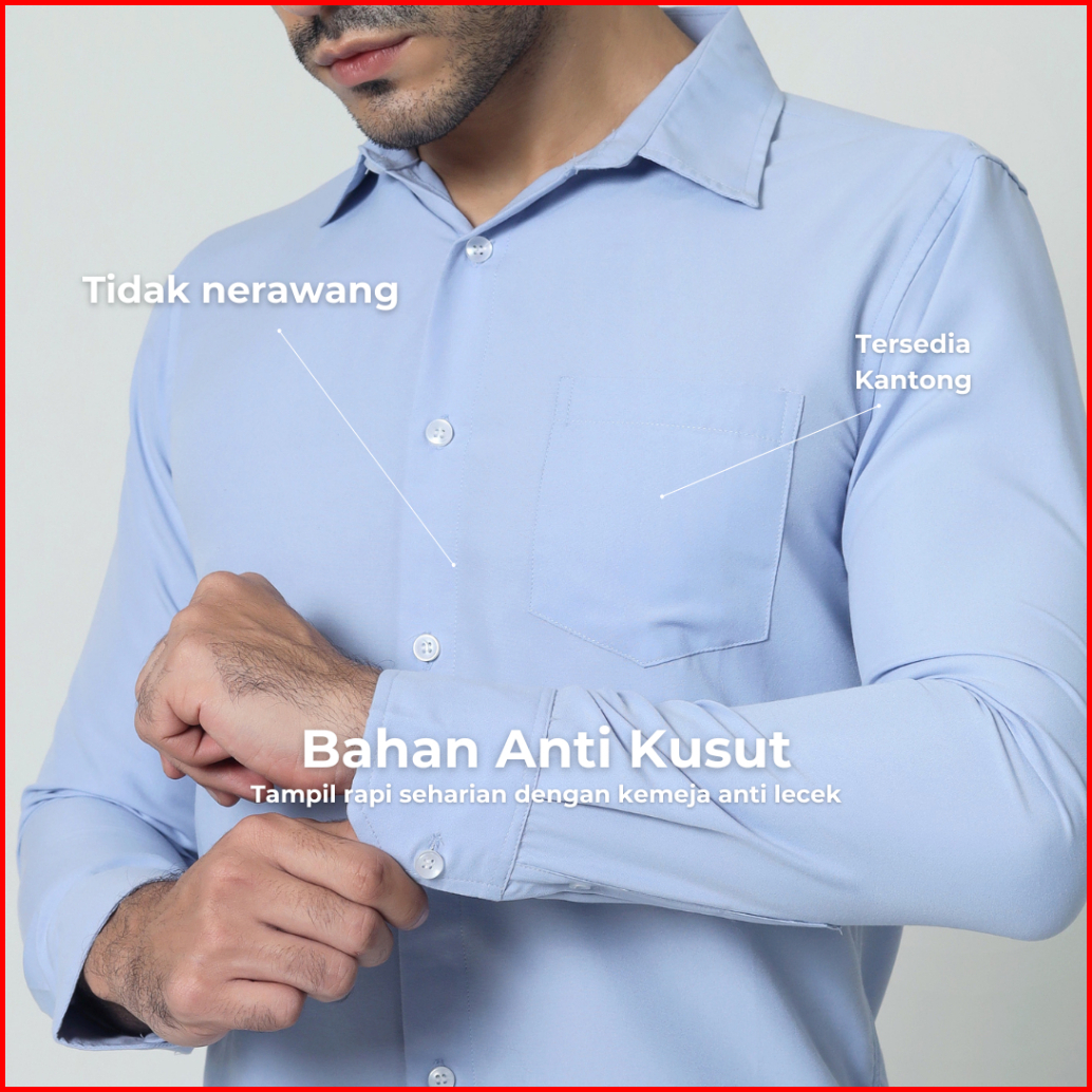 Almano Eston Shirt Ls Sky Blue Kemeja Pria Slim Fit Polos Panjang Biru Langit