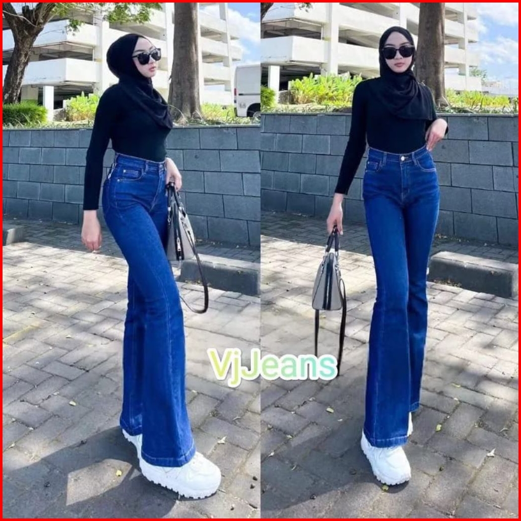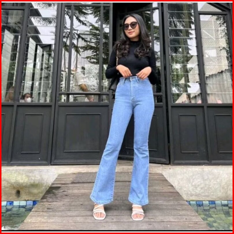 Highwast Jeans Cutbray Loose Anti Ngatung Bahan Melar Tebal