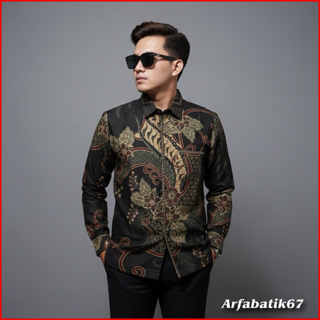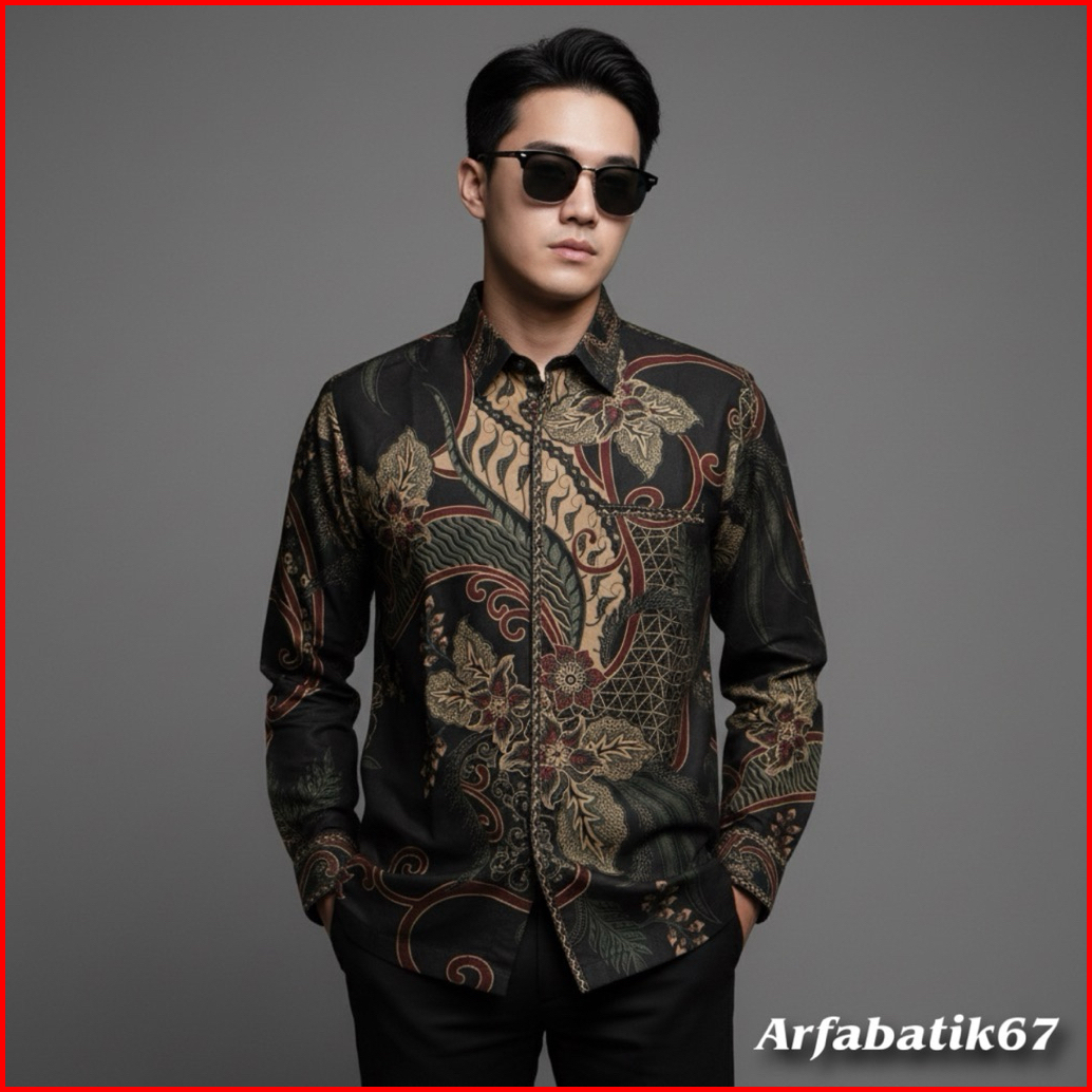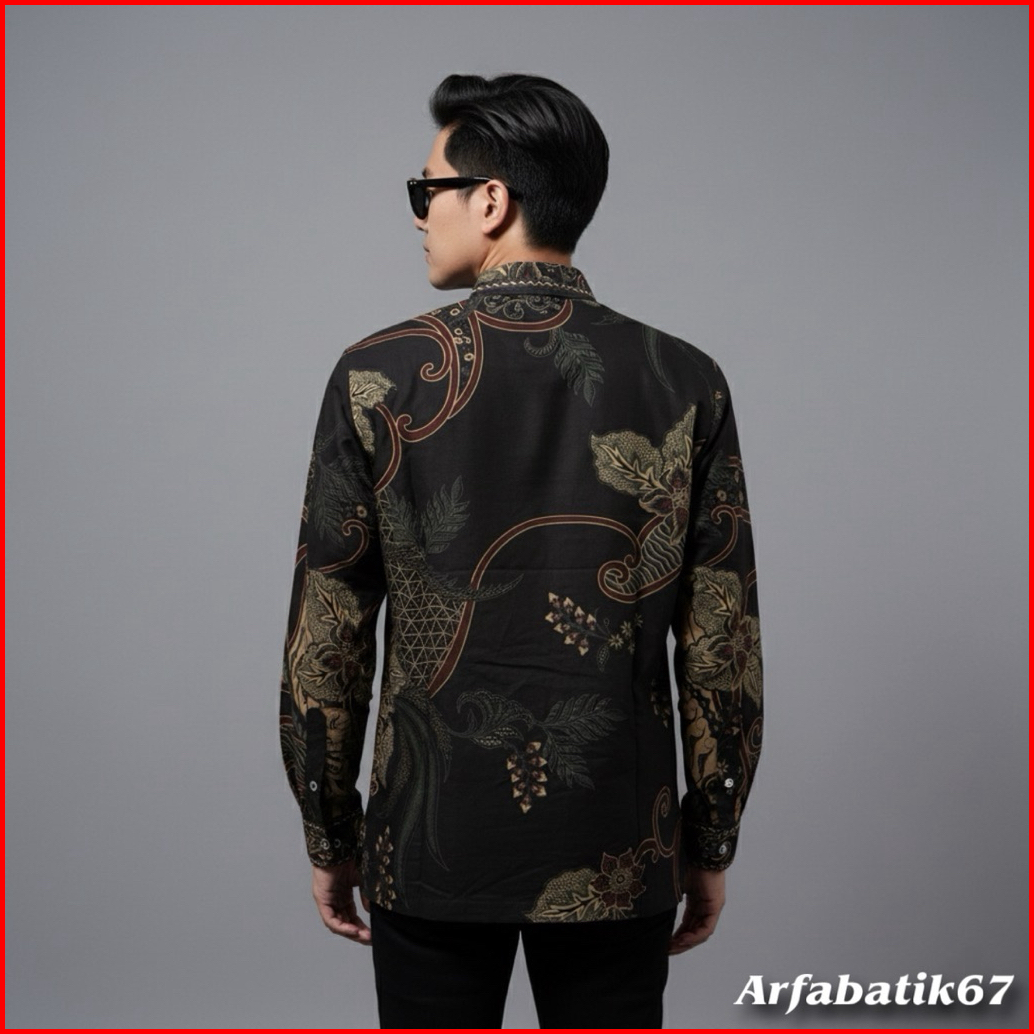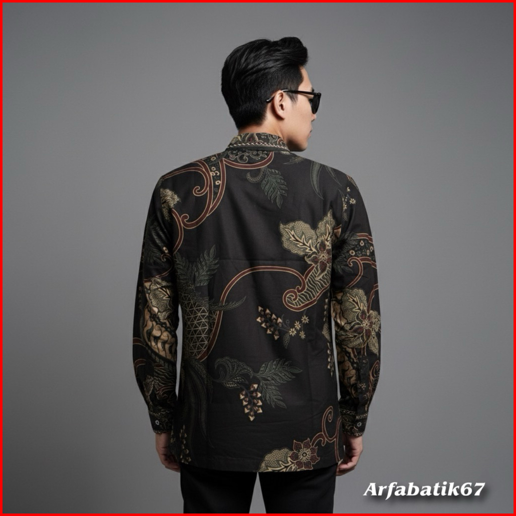 Parsha Hitam Smock Kemeja Batik Smock Bordir Pria Katun Prima Premium Lengan Panjang Lapis Full Furing Trikot Wafle Full