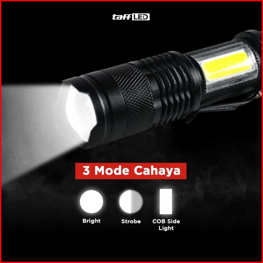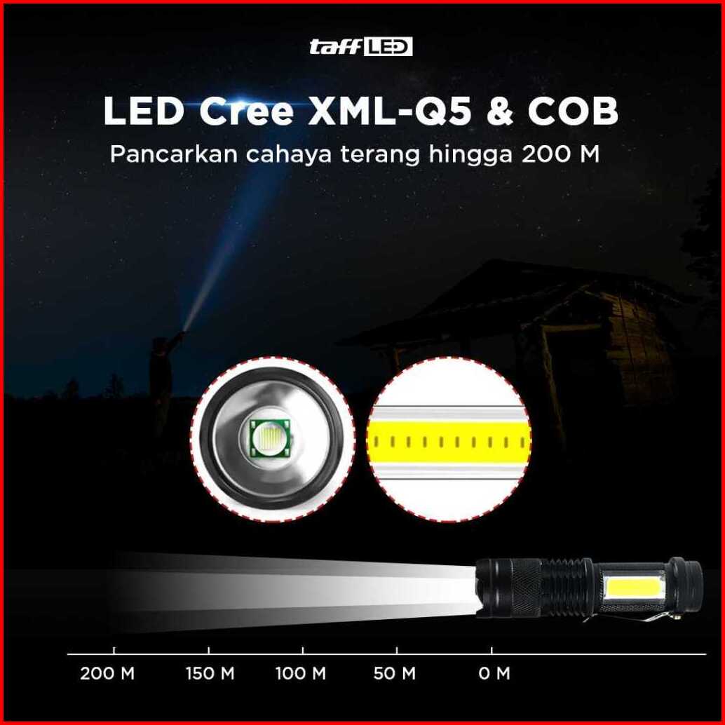 Taffled Senter Led Zoomable Rechargeable Xml-q5 Cob 3800 Lumens - P1 - Black