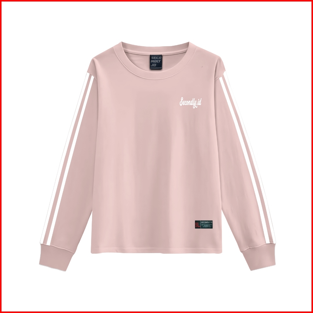 Secondly.id Kaos Lengan Panjang Wanita Cotton Combed 24s Atasan Cewek List Tangan Simple Stylish