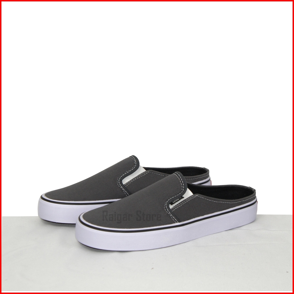 Sepatu Sandal Bustong Slop Pria Wanita Selop Canvas Hitam Casual Simpel Ringan Murah Terlaris