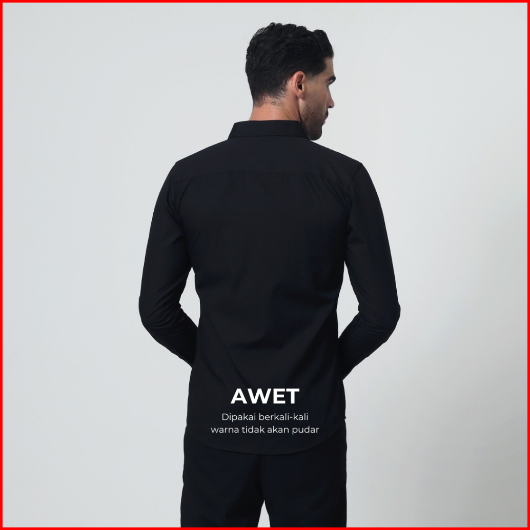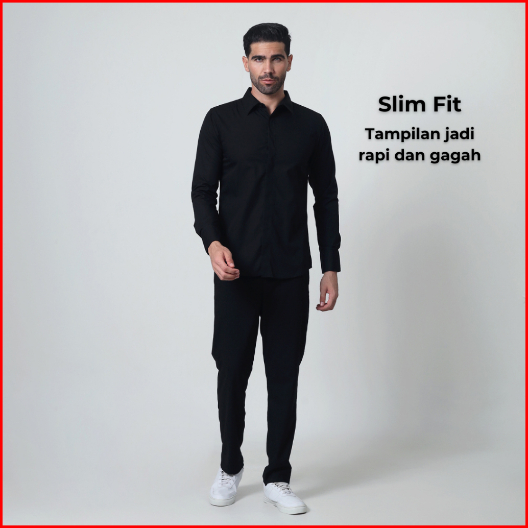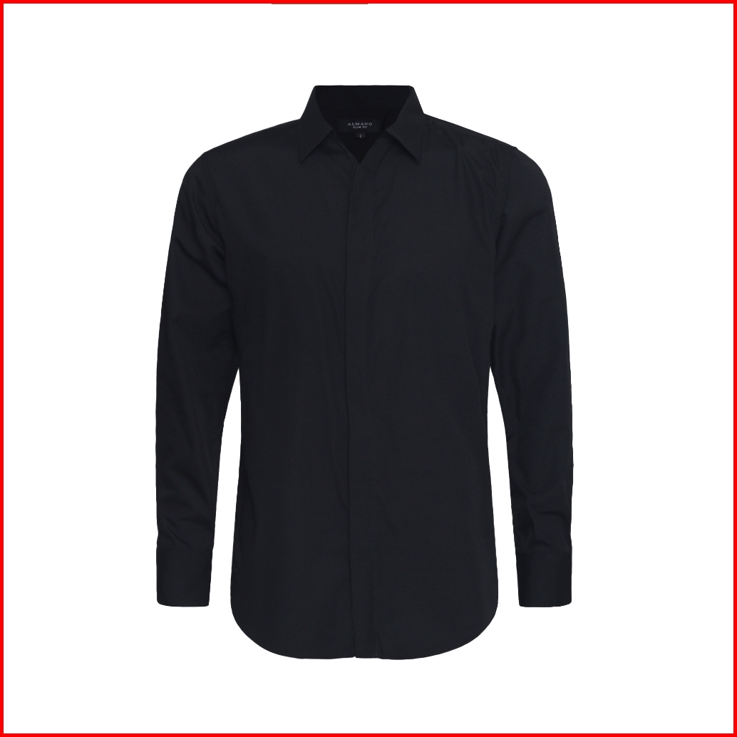 Almano Clean Look Shirt Ls Black Kemeja Pria Slim Fit Polos Panjang Katun Hitam