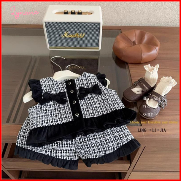 Lynana - Setelan Chela Mewah Atasan Celana Bahan Tweed Set Anak Perempuan Usia 0-6th