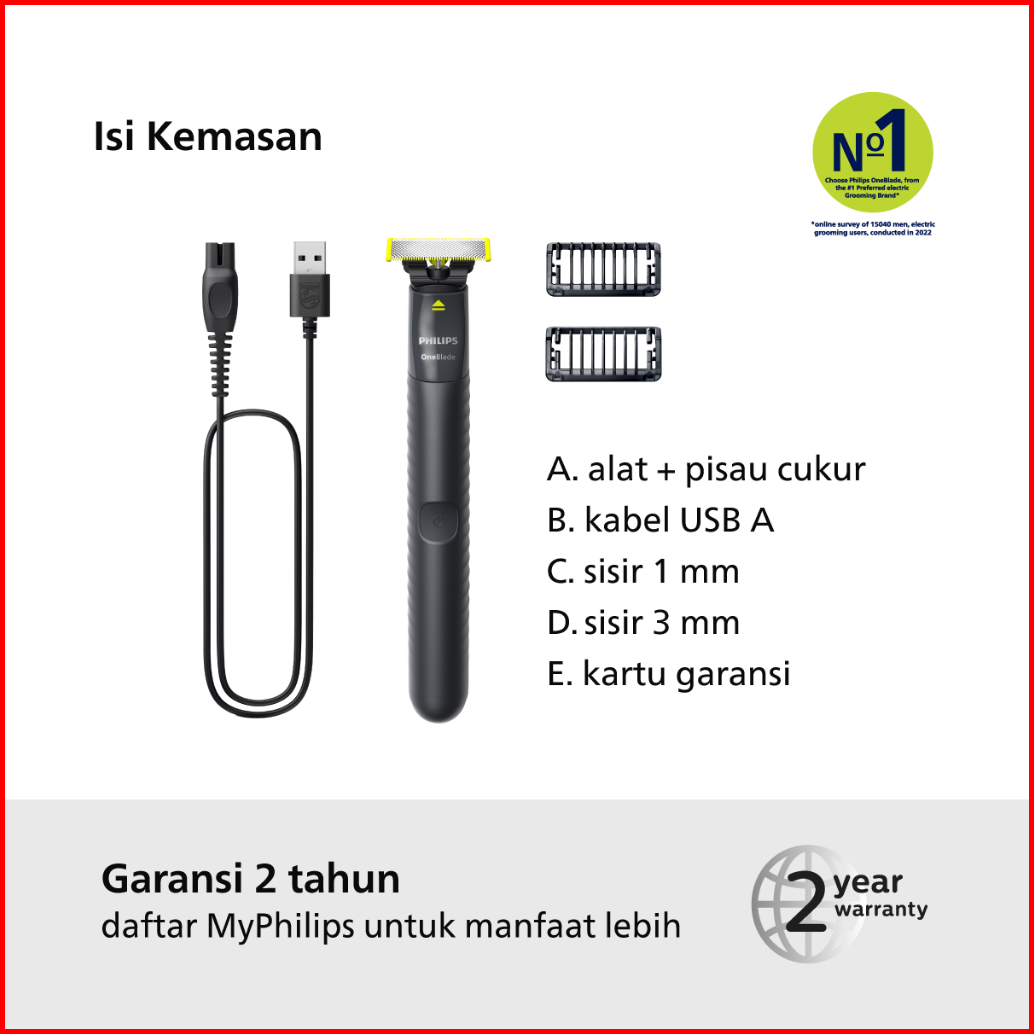 Philips Oneblade Alat Cukur Electric Hybrid Pria Cukur Dan Tata Tanpa Luka Baret Handle Qp1424 10