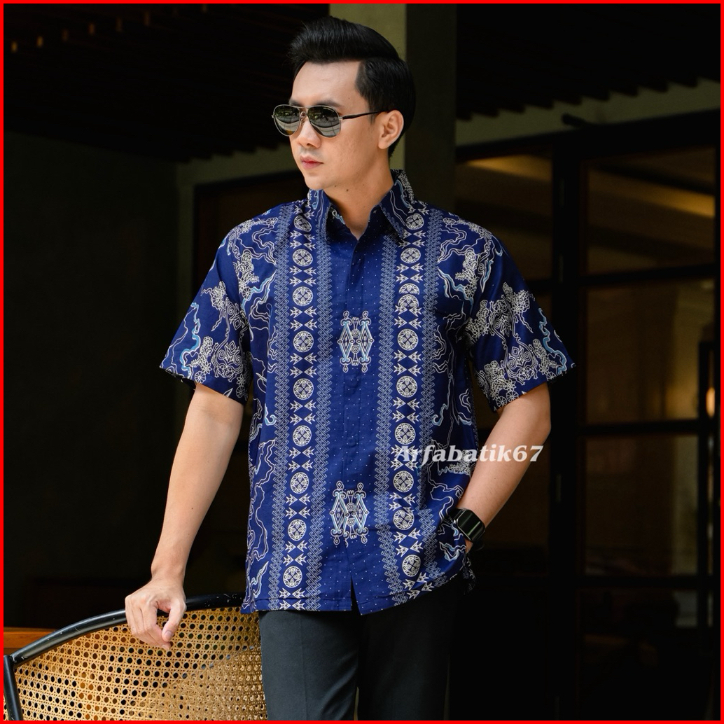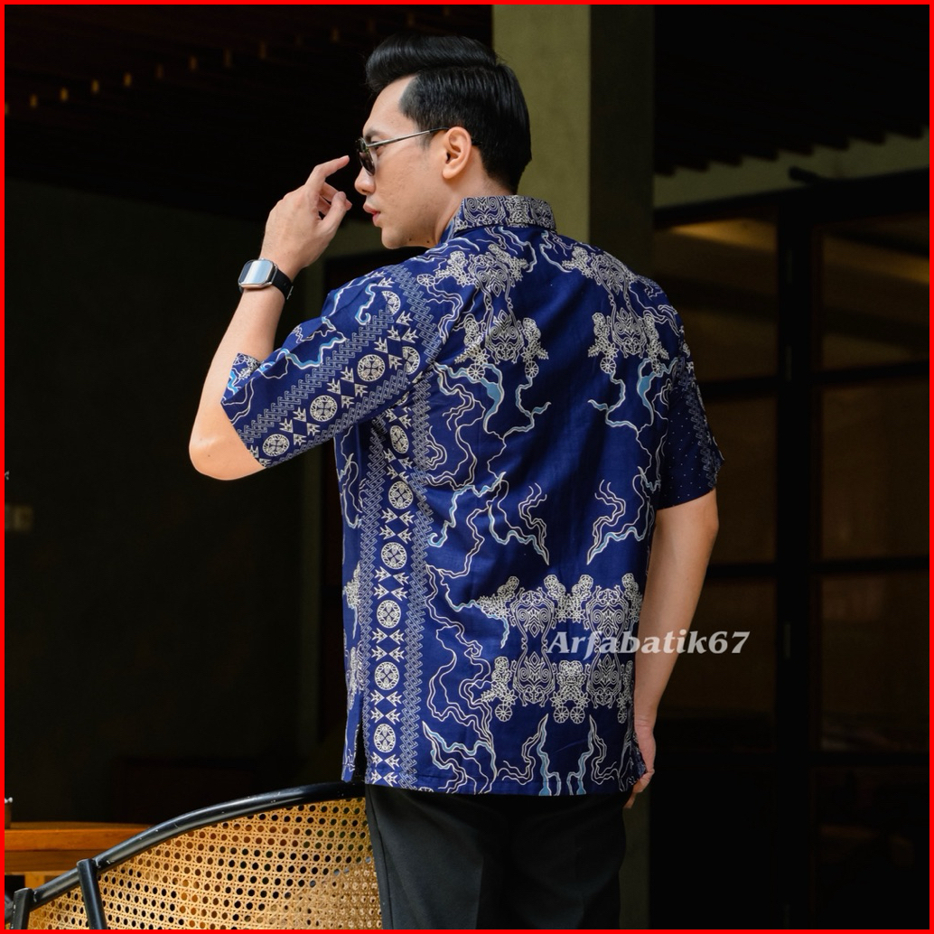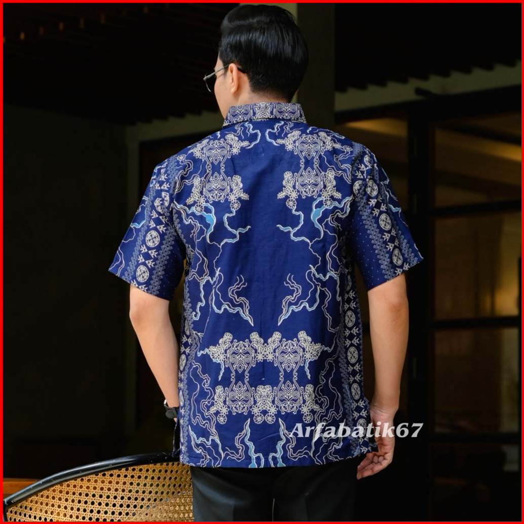 Orca Biru Baju Batik Pria Lengan Pendek Katun Prima Premium Lapis Furing Hero Ready Seragaman By Arfabatik67