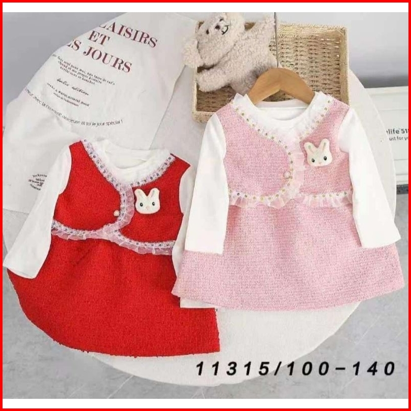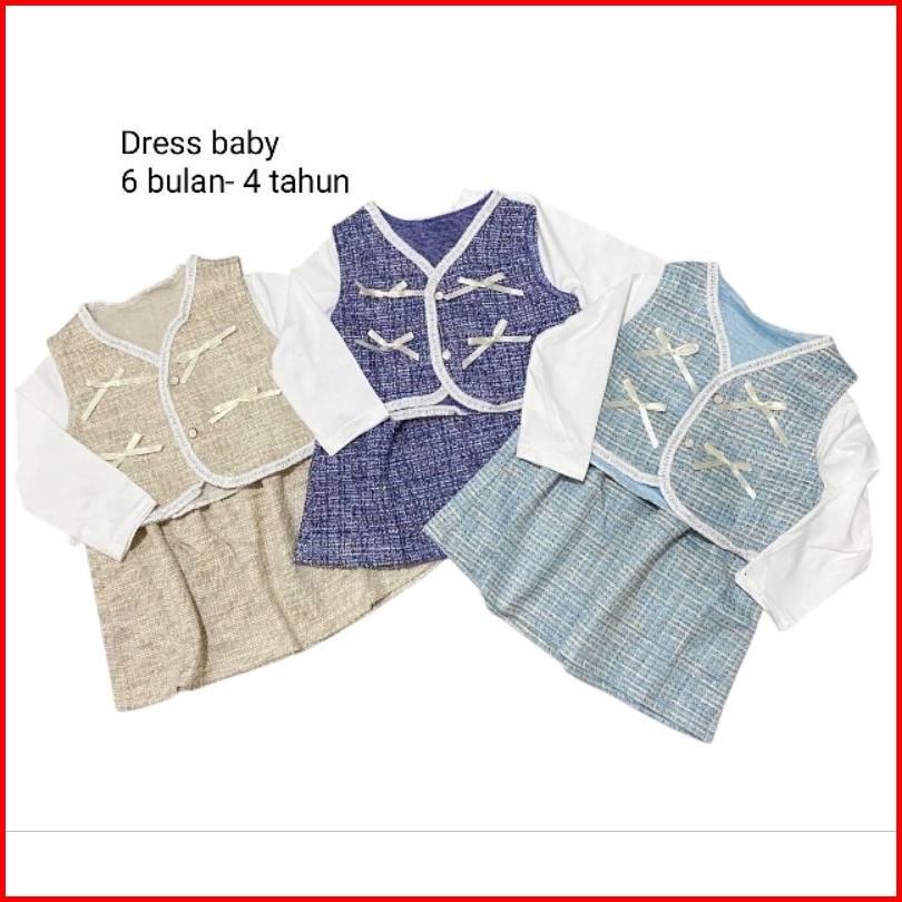 1-4 Tahun Setelan 2in1 Dress Tweed Rompi Anak Perempuan